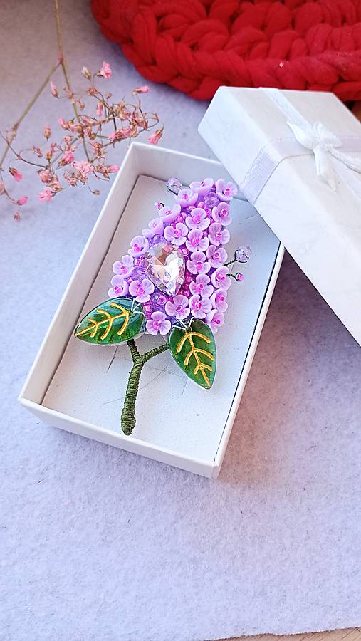 Korálková brošňa Orgován fialový