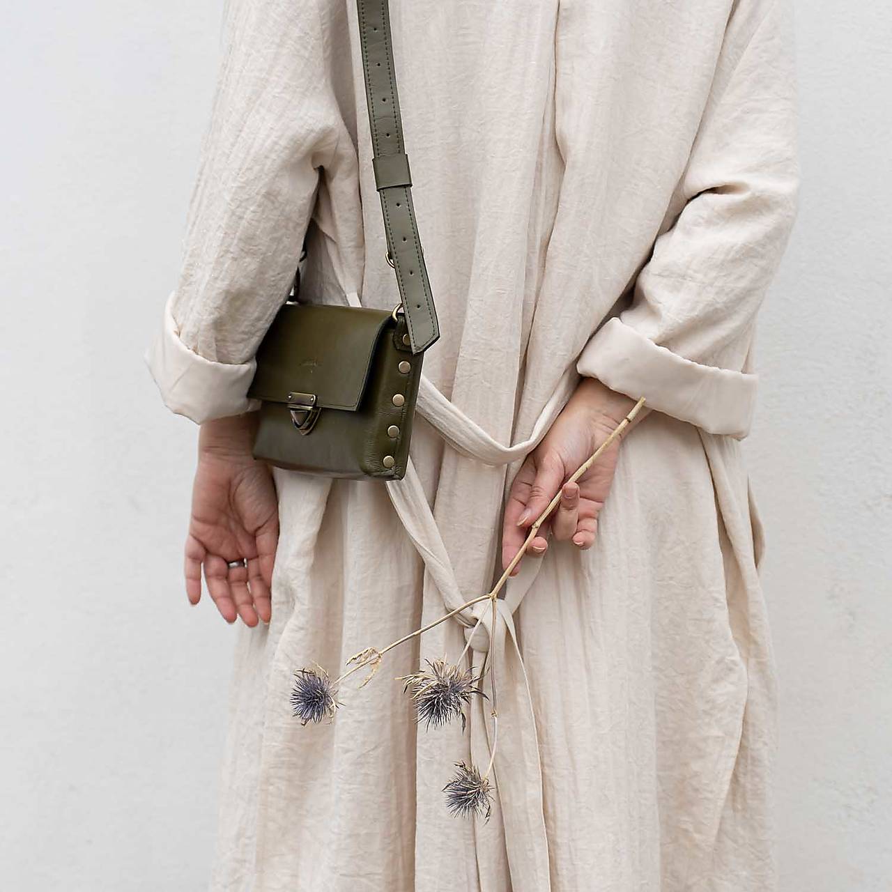 MidiMe je multifunkčná príručná kožená kabelka, ľadvinka a po odňatí popruhov aj dočasná peňaženka. Má kratší popruh, ktorý si viete prehodiť cez ramená, alebo pripnúť na pás. Je ušitá z kvalitnej hovädzej kože.