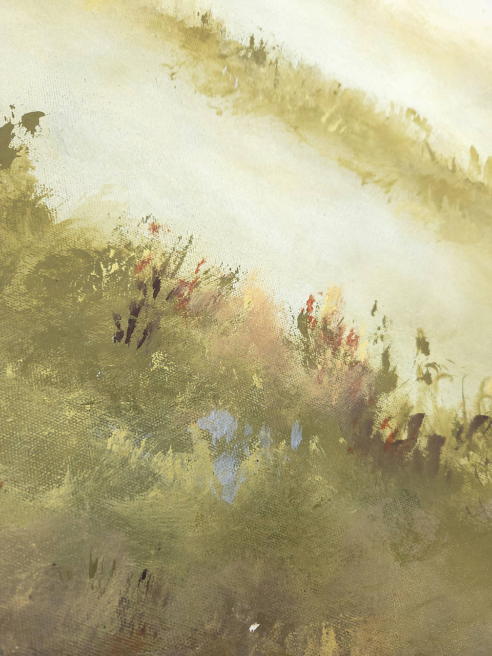 Maľba kvalitnými akrylovými umeleckými farbami na bavlnenom EKO plátne. Obraz posielame s kompletnou technickou úpravou, natiahnutý na blindráme (drevenej konštrukcii) z borovicového dreva.