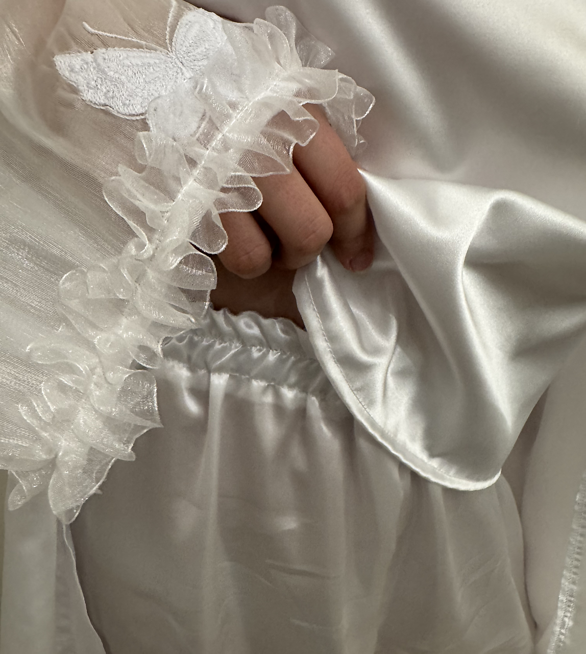 - rukávy ukončené nádherným organzovým nariasením,