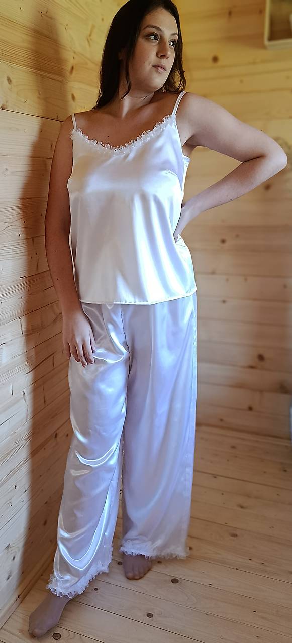 - Satén: 100% polyester, Certifikát Öko-Tex trieda 1; jemný, hladký, splývavý, lesklý, predpraný, čo znamená, že pyžamo sa Vám počas prania nezrazí.