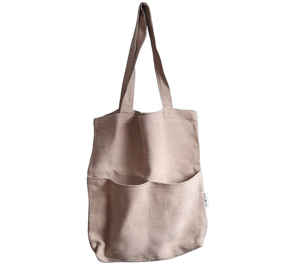 Jednovrstvová taška z ľanového plátna, na prednej strane s vreckami.