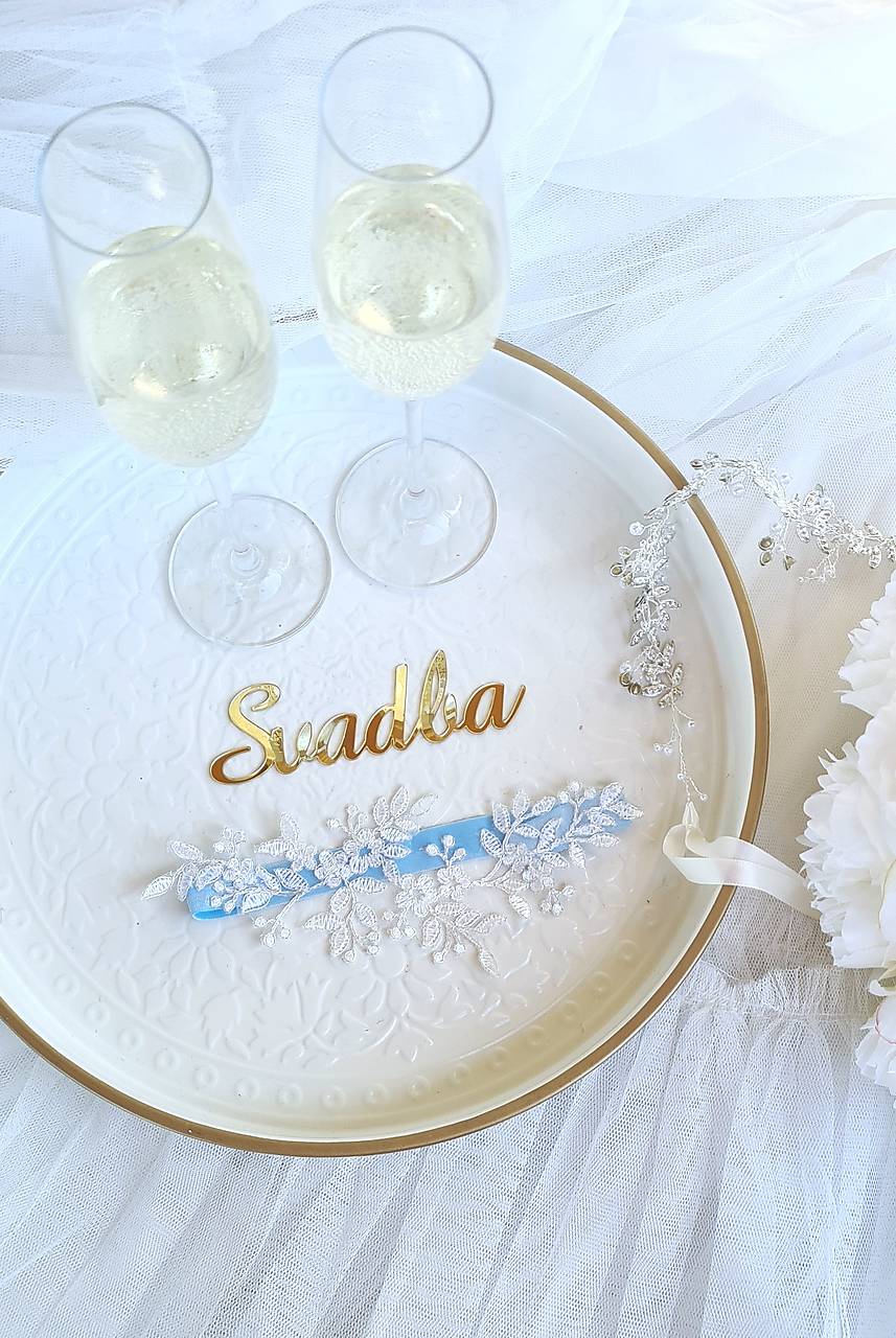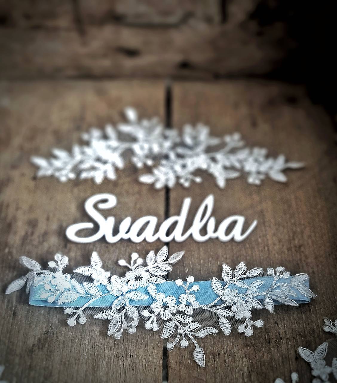 Podväzok s čipkovou perleťovou na jemnej svetlomodrej gume