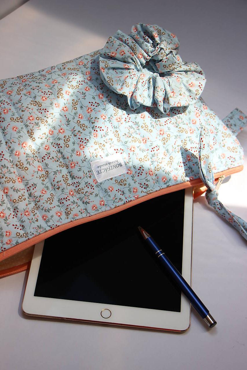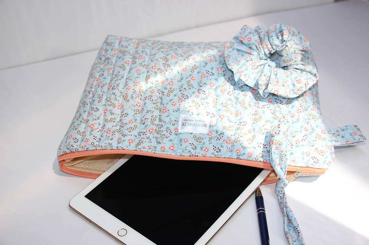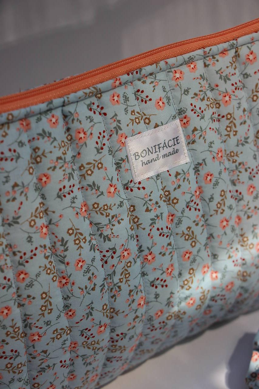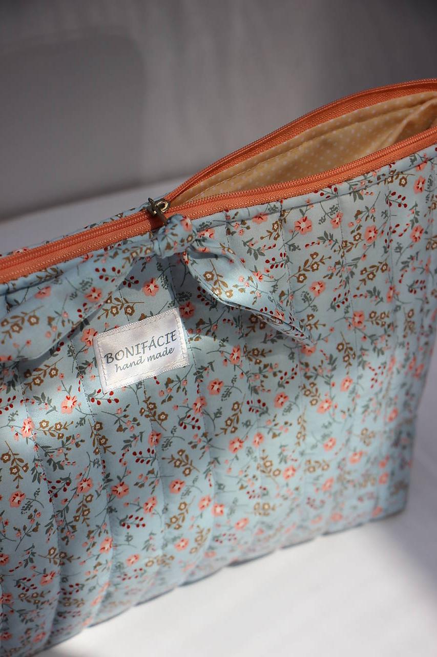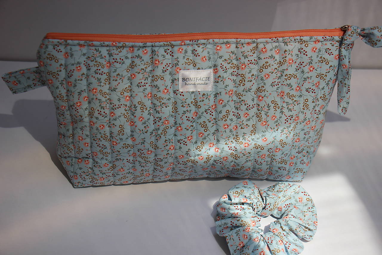 Větší prošívaná kosmetická taštička s jemným vzorem.