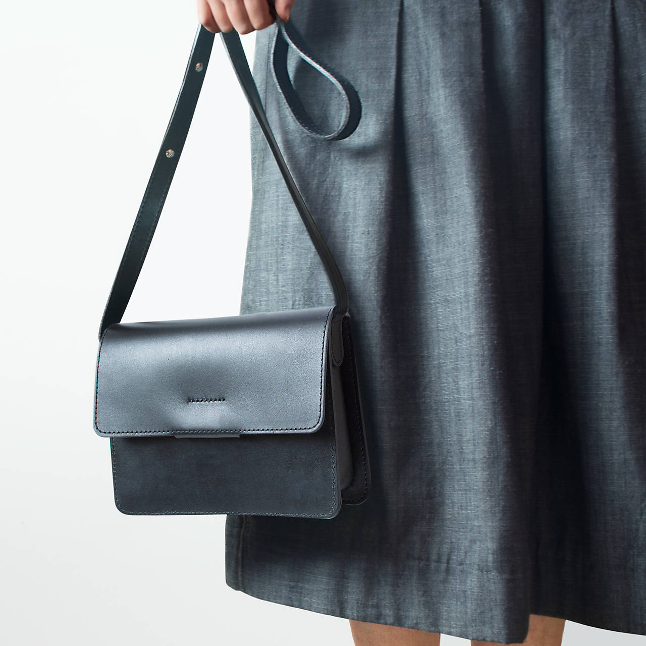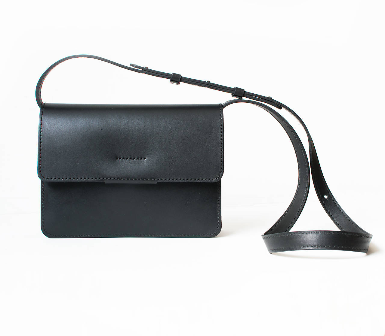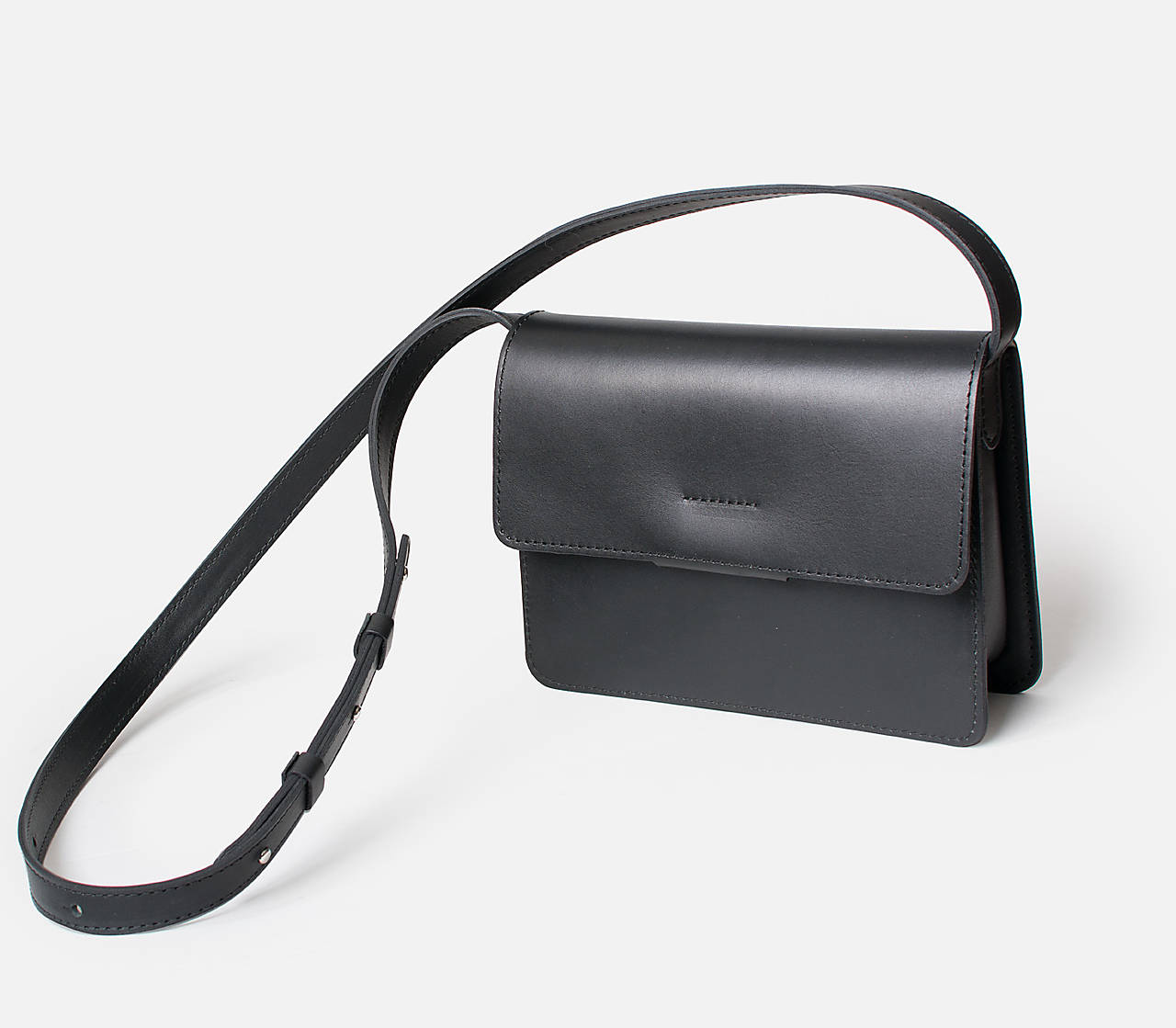 Minimalistická kožená kabelka Crossbody Bag s nastaviteľným dlhým popruhom.