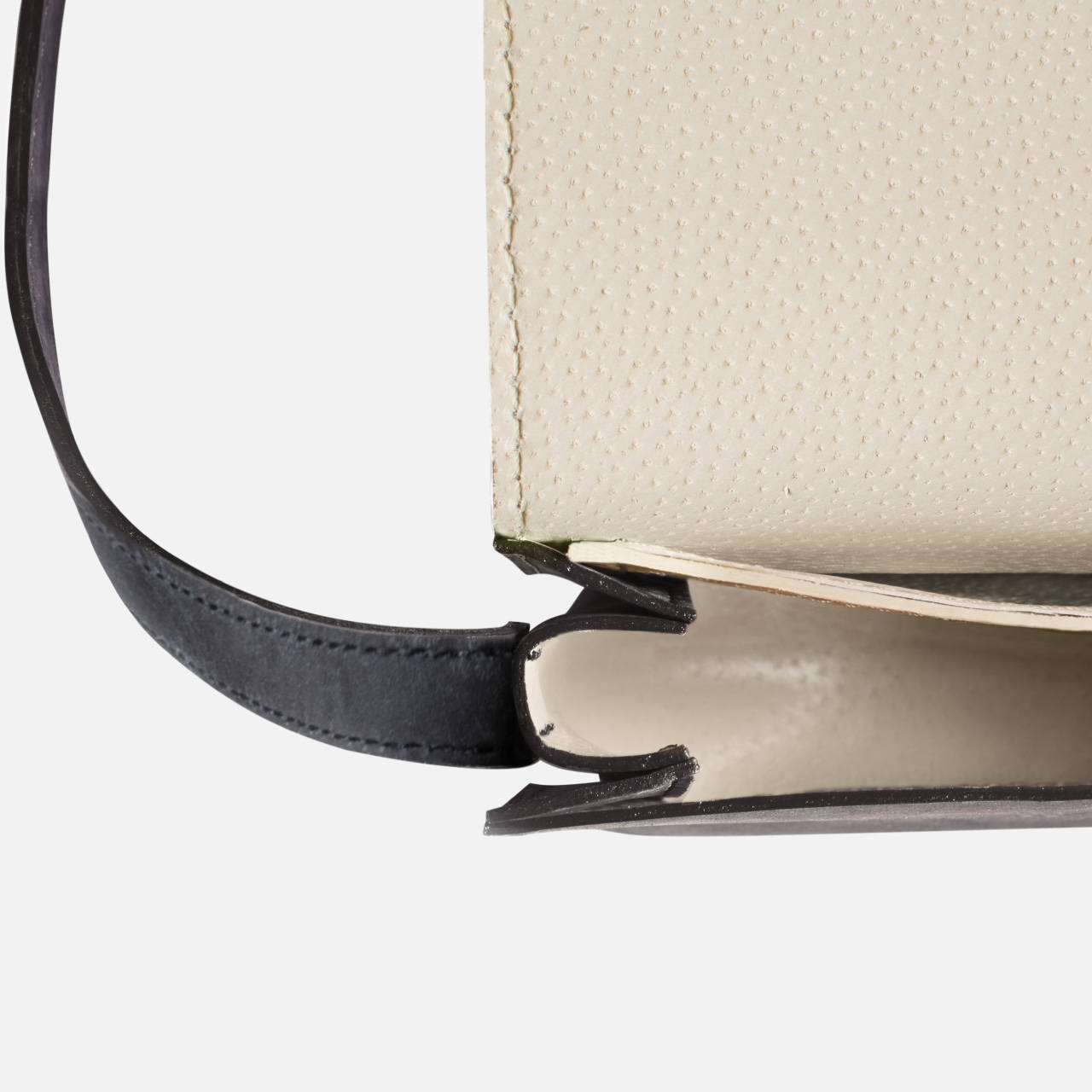 Vyrobená z prémiovej hovädzej kože, pochádzajúcej z Taliansku. Táto rastlinne činená koža je odolná, voňavá a časom získava jedinečnú patinu. Vnútro je podšité pravou kožou béžovej farby a hrany sú ručne farbené.