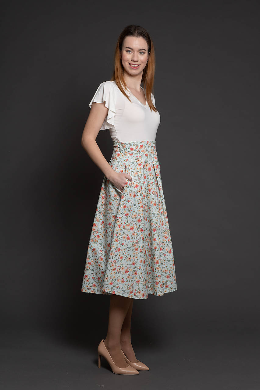 Komfort: Ľahko sa ošetruje a je pohodlná na nosenie v rôznych ročných obdobiach. Je to materiál, ktorý spája štýl, komfort a praktickosť, čo ju robí skvelou voľbou pre sukne na každú príležitosť.
