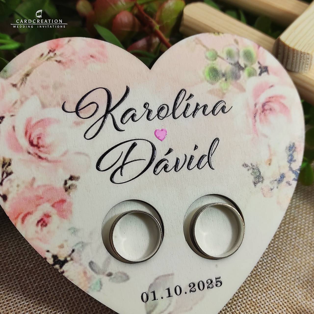 Tanierik na prstienky s Vašimi menami a dátumom svadby na svadbu alebo ako krásna spomienka na svadobný deň kedy ste si povedali ÁNO..