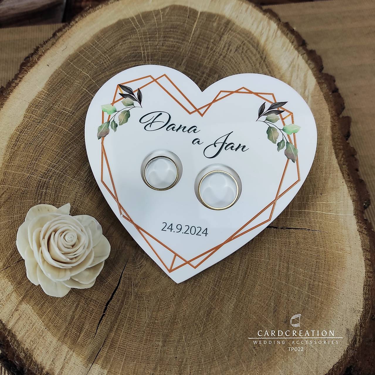 Tanierik na prstienky s Vašimi menami a dátumom svadby na svadbu alebo ako krásna spomienka na svadobný deň kedy ste si povedali ÁNO.