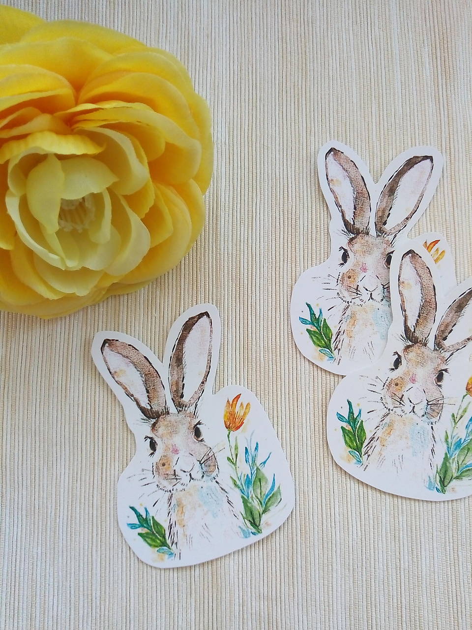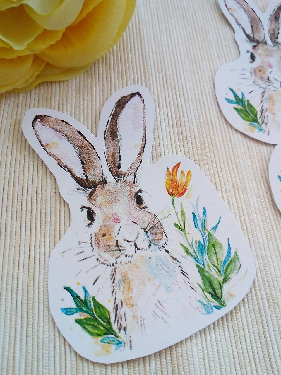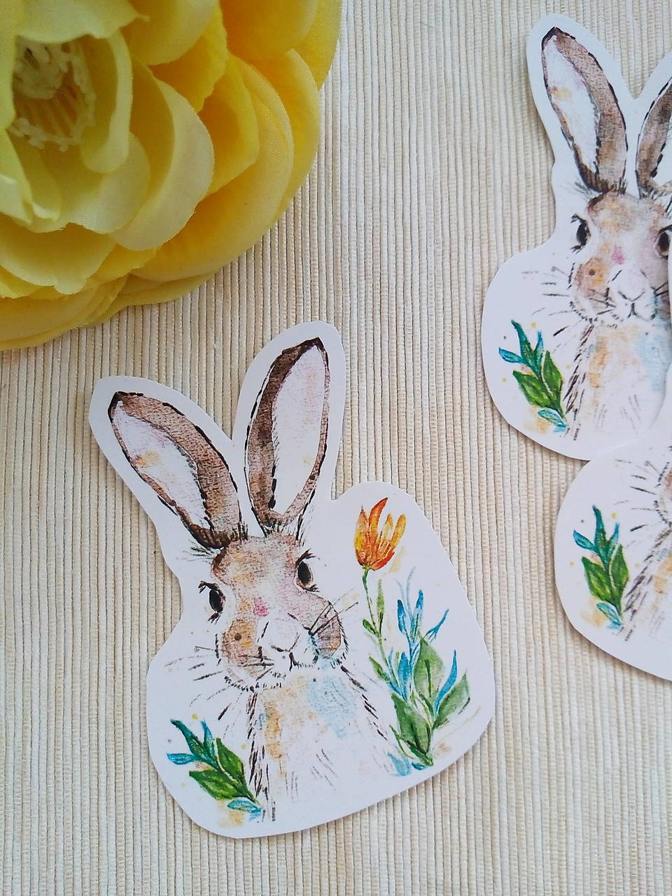 Nálepka zajačik je vytvorená z môjho pôvodného akvarelu, po grafickej úprave tlačená na kvalitný matný samolepiaci papier s gramážou 120g/m2. Ručne vystrihovaná.
