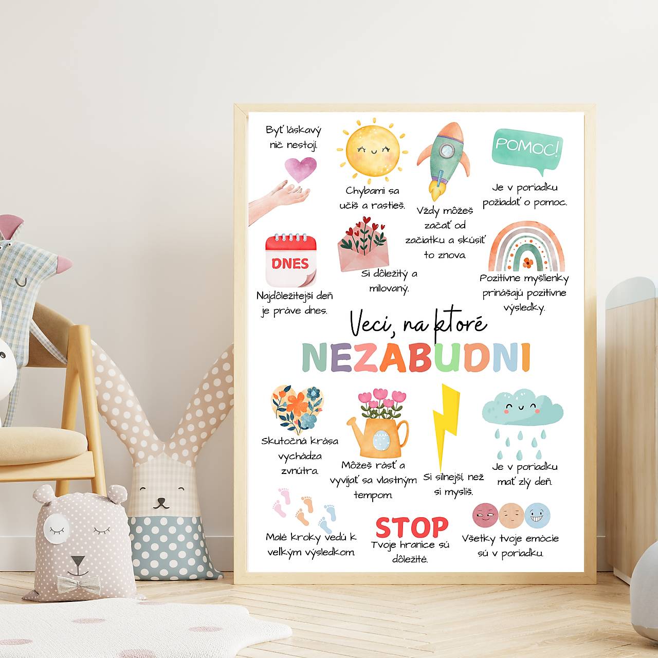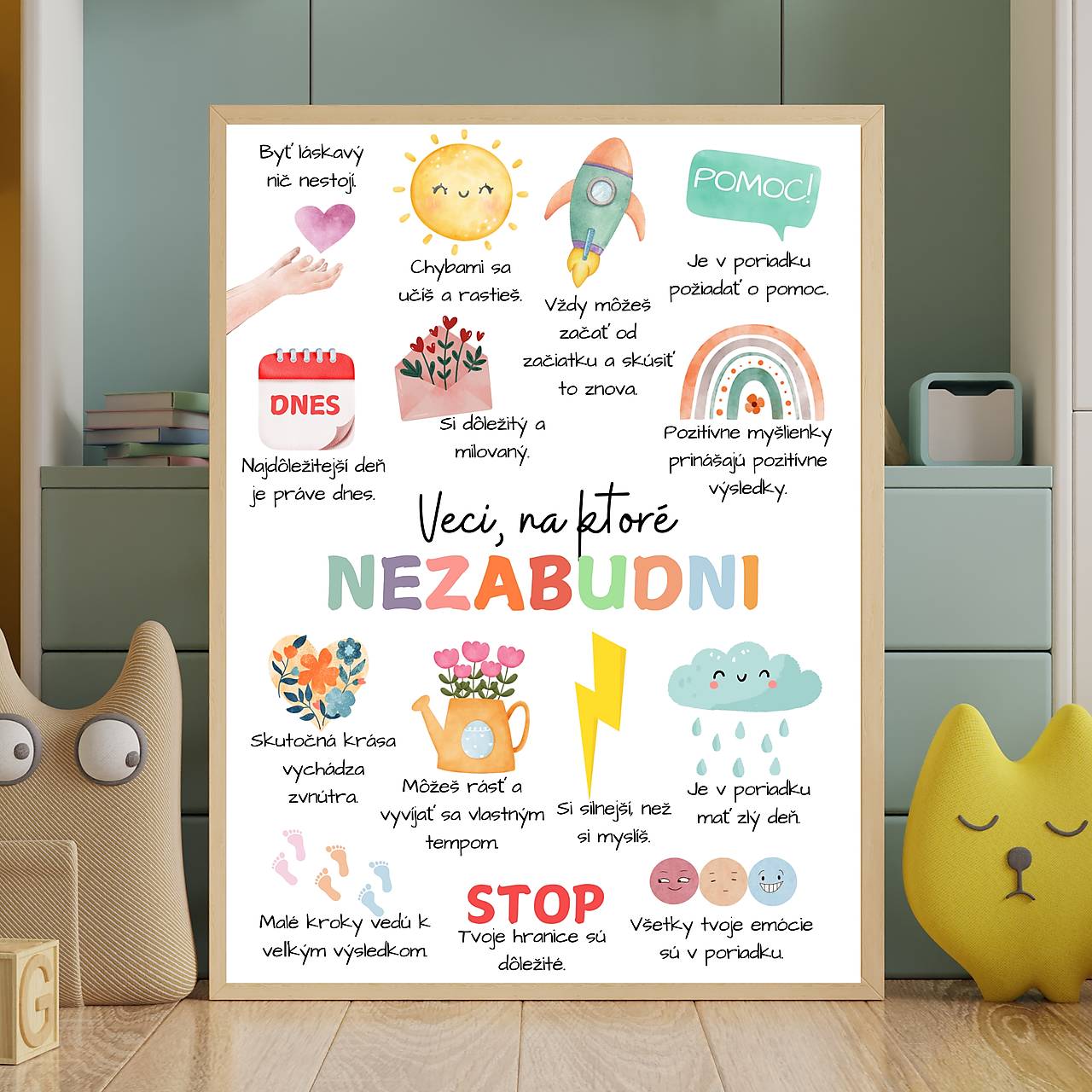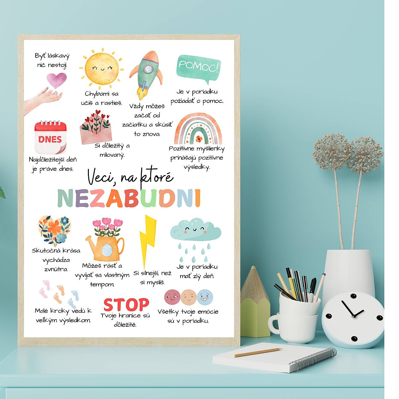 Jednoducho si ho stiahnite, vytlačte a zaveste na miesto, kde sa deti budú cítiť inšpirované každý deň. Tento plagát nie je len dekoráciou, ale cenným nástrojom na podporu zdravého emocionálneho vývinu a radosti z učenia. Vytvorte pre svoje deti priestor, kde sa sny môžu stať skutočnosťou!
