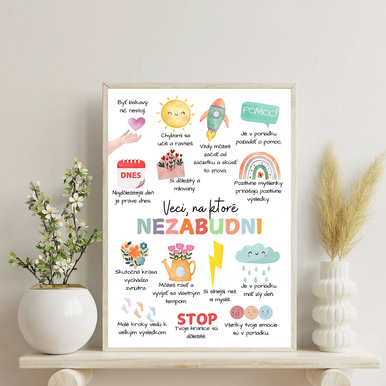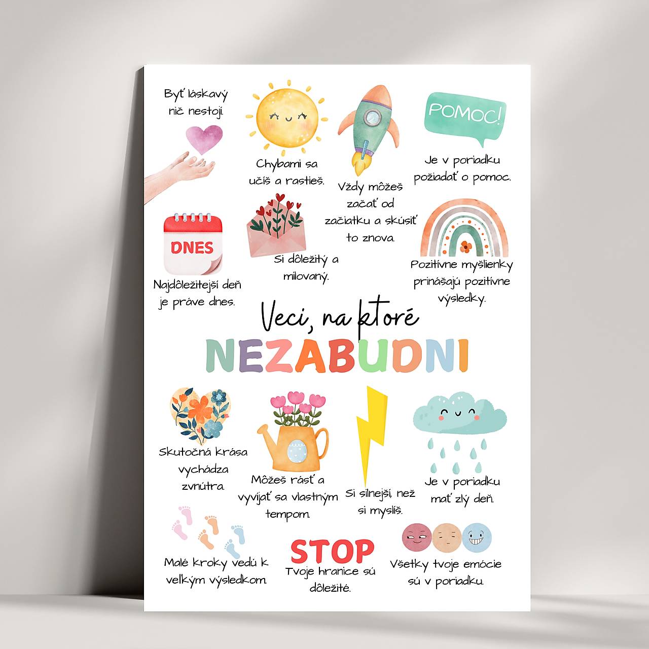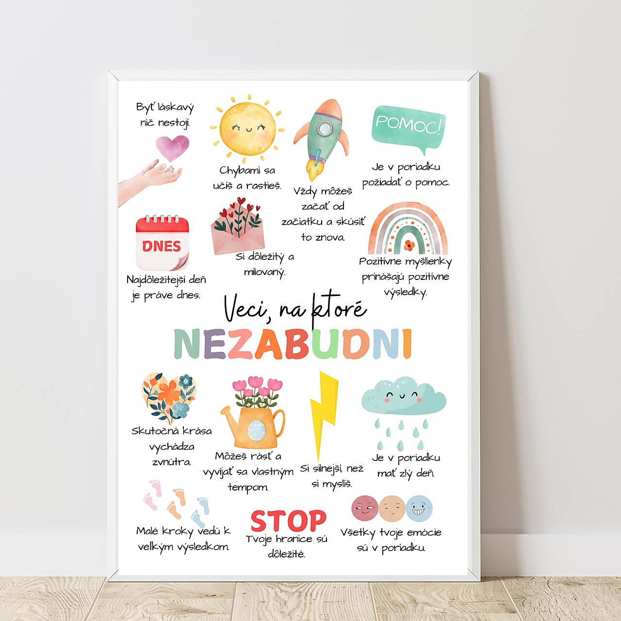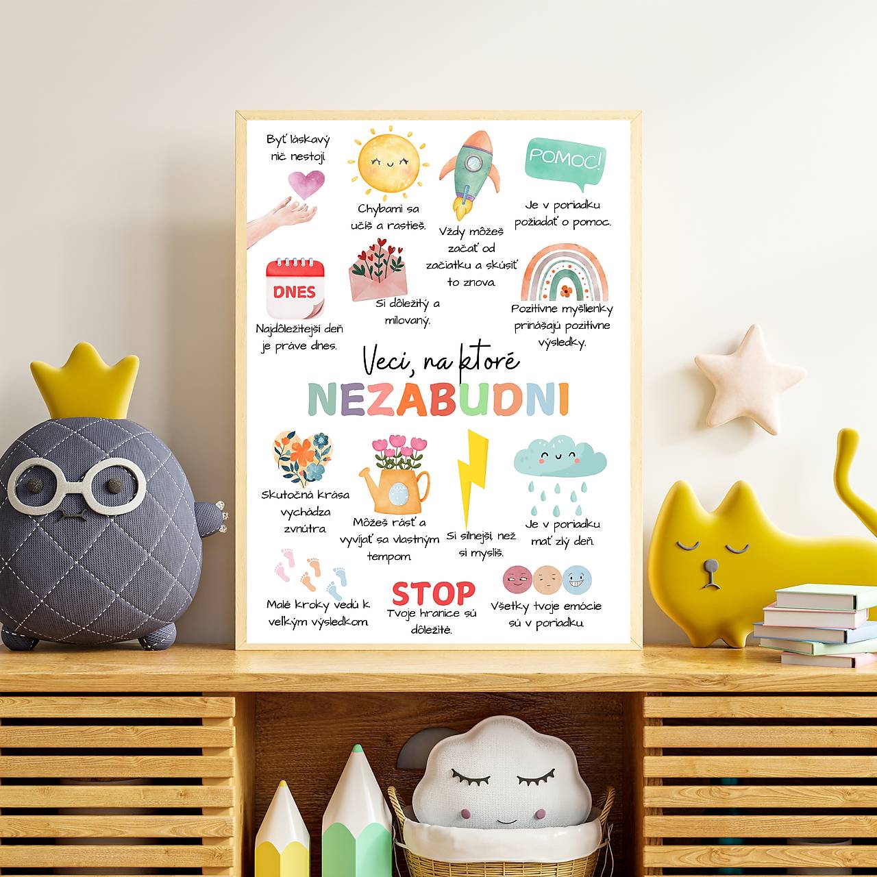 Jednoducho si ho stiahnite, vytlačte a zaveste na miesto, kde sa deti budú cítiť inšpirované každý deň. Tento plagát nie je len dekoráciou, ale cenným nástrojom na podporu zdravého emocionálneho vývinu a radosti z učenia. Vytvorte pre svoje deti priestor, kde sa sny môžu stať skutočnosťou!