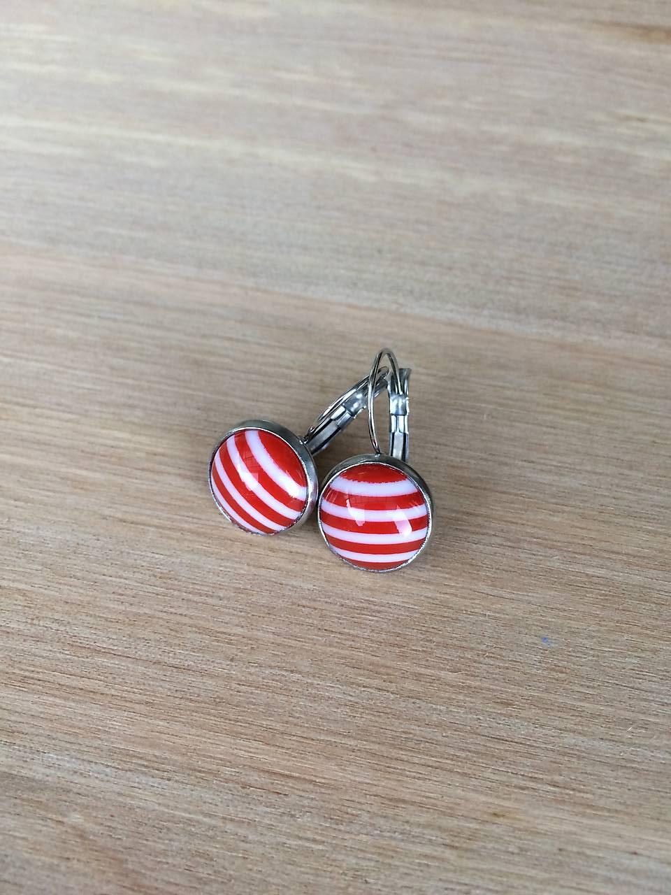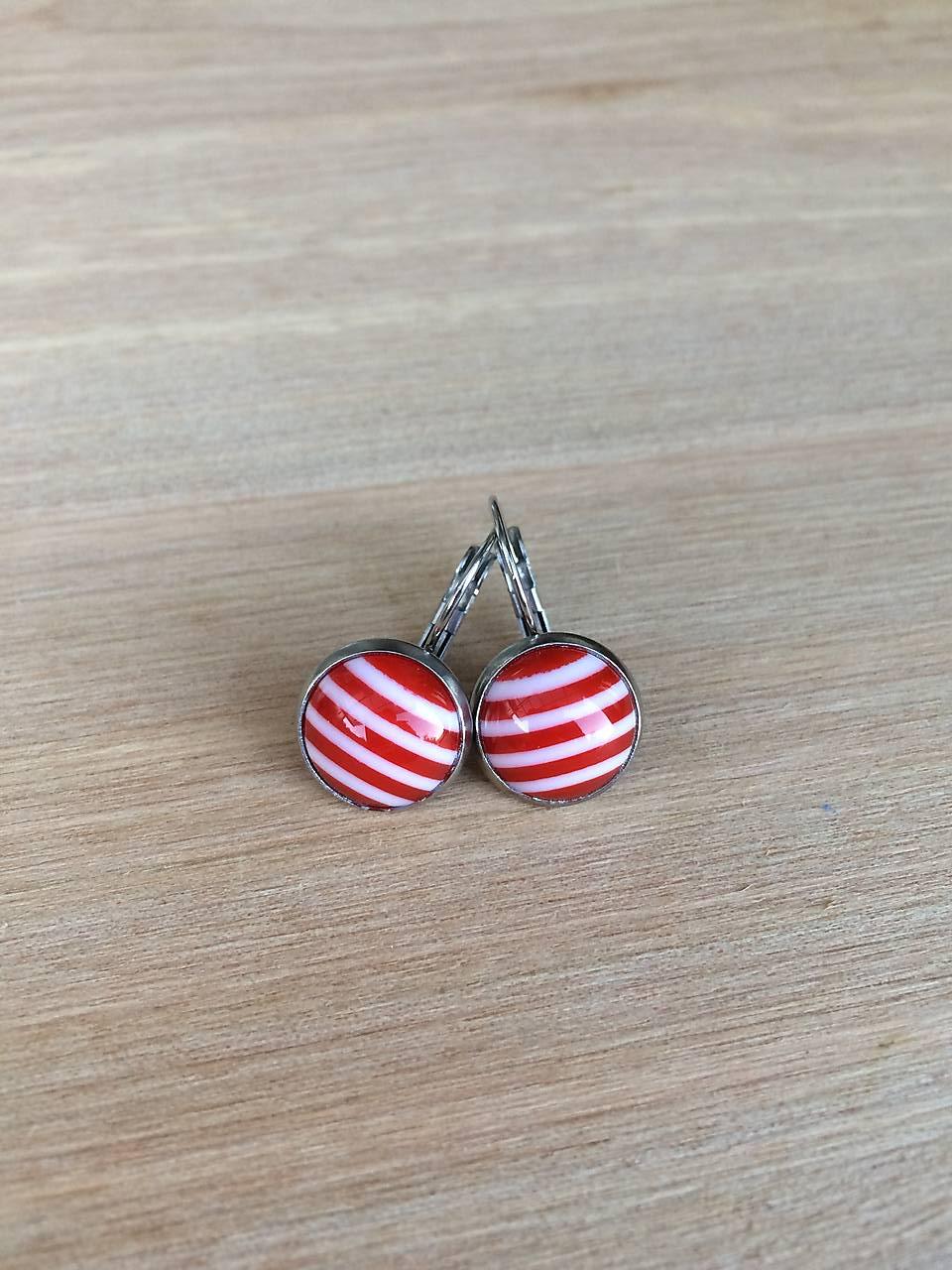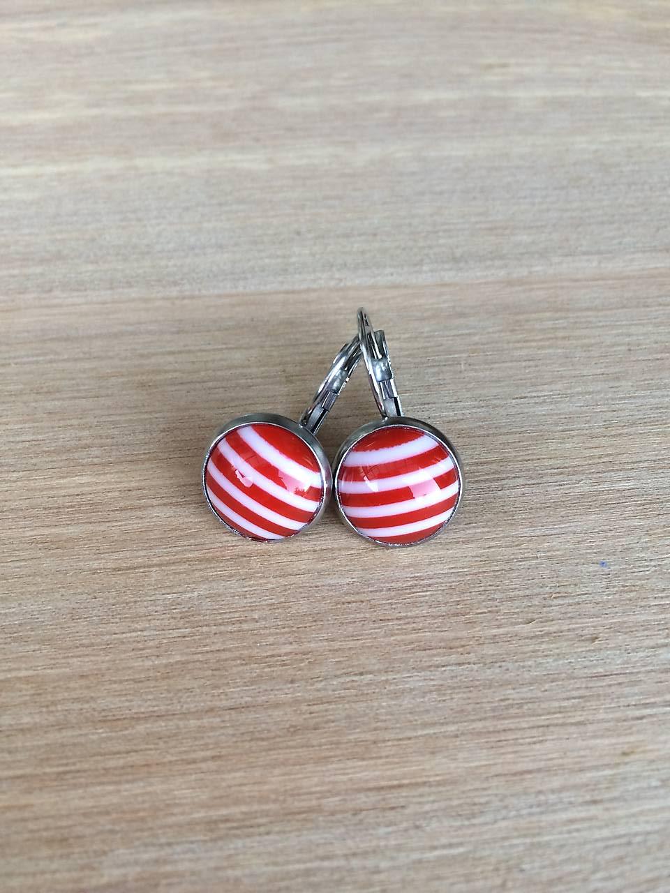 letné náušnice v bielo červenej farbe, dĺžka 2,5 cm, priemer lôžka 12mm....komponenty z ocele odolné voči vode a zmene povrchu...