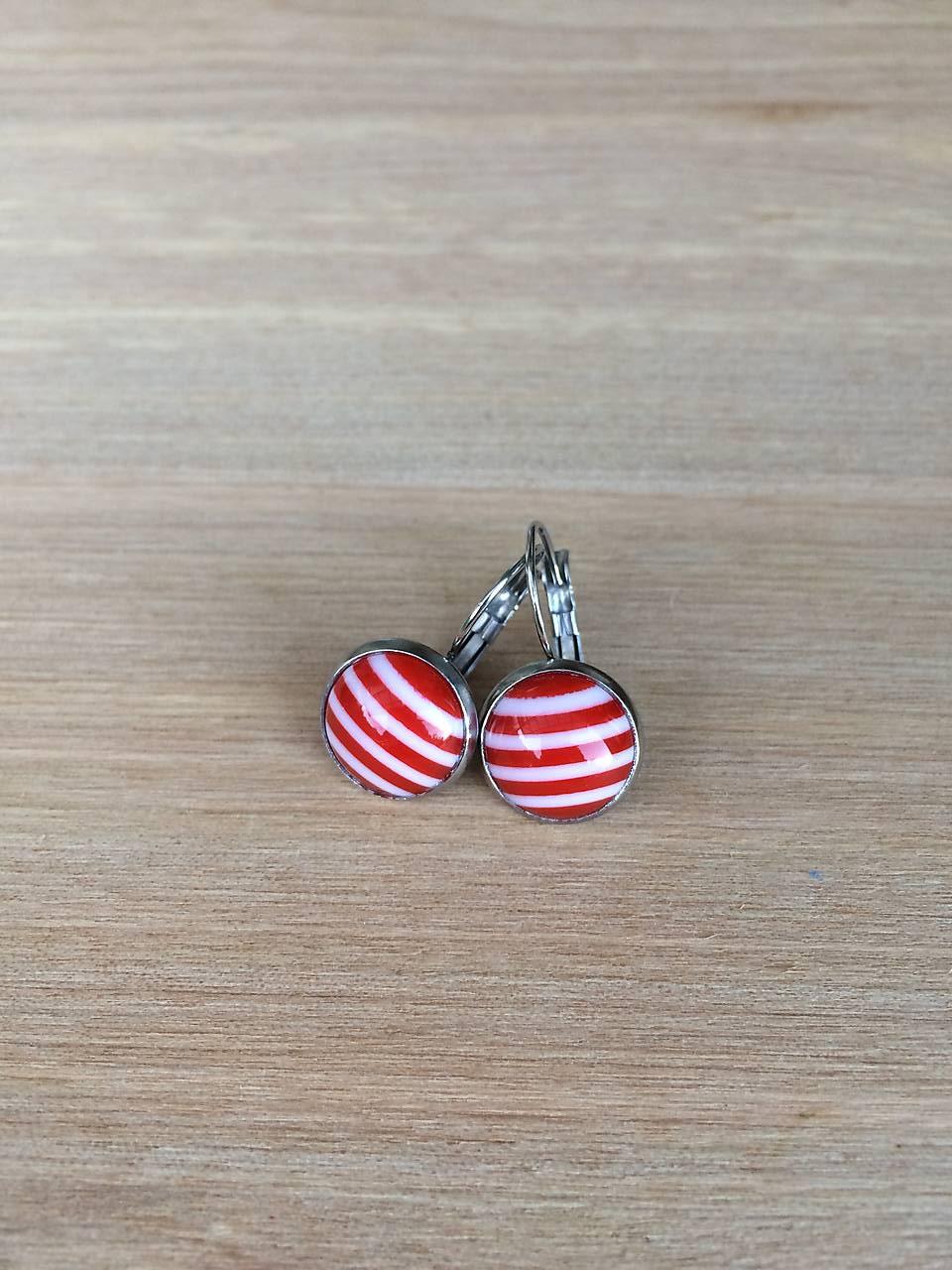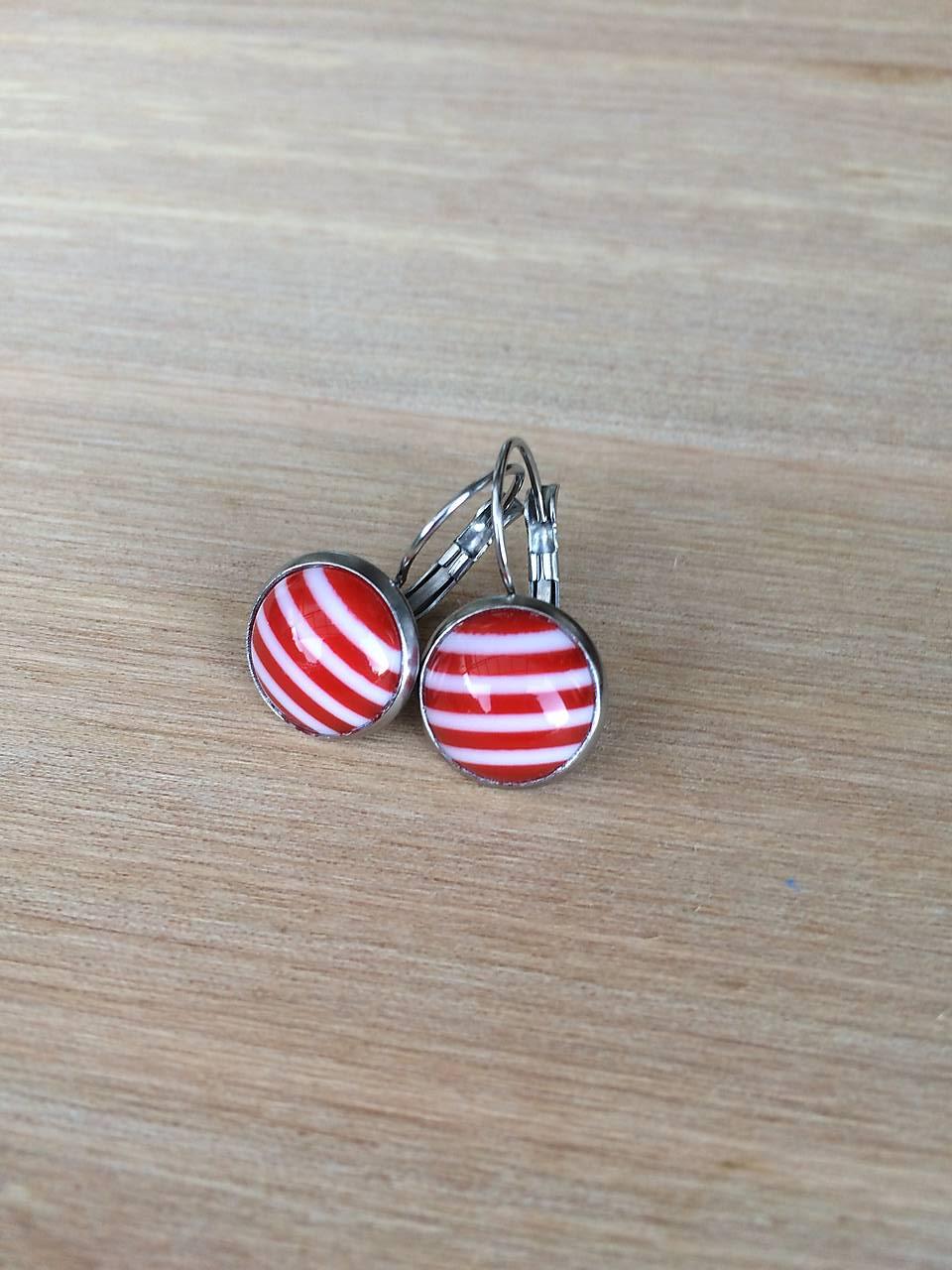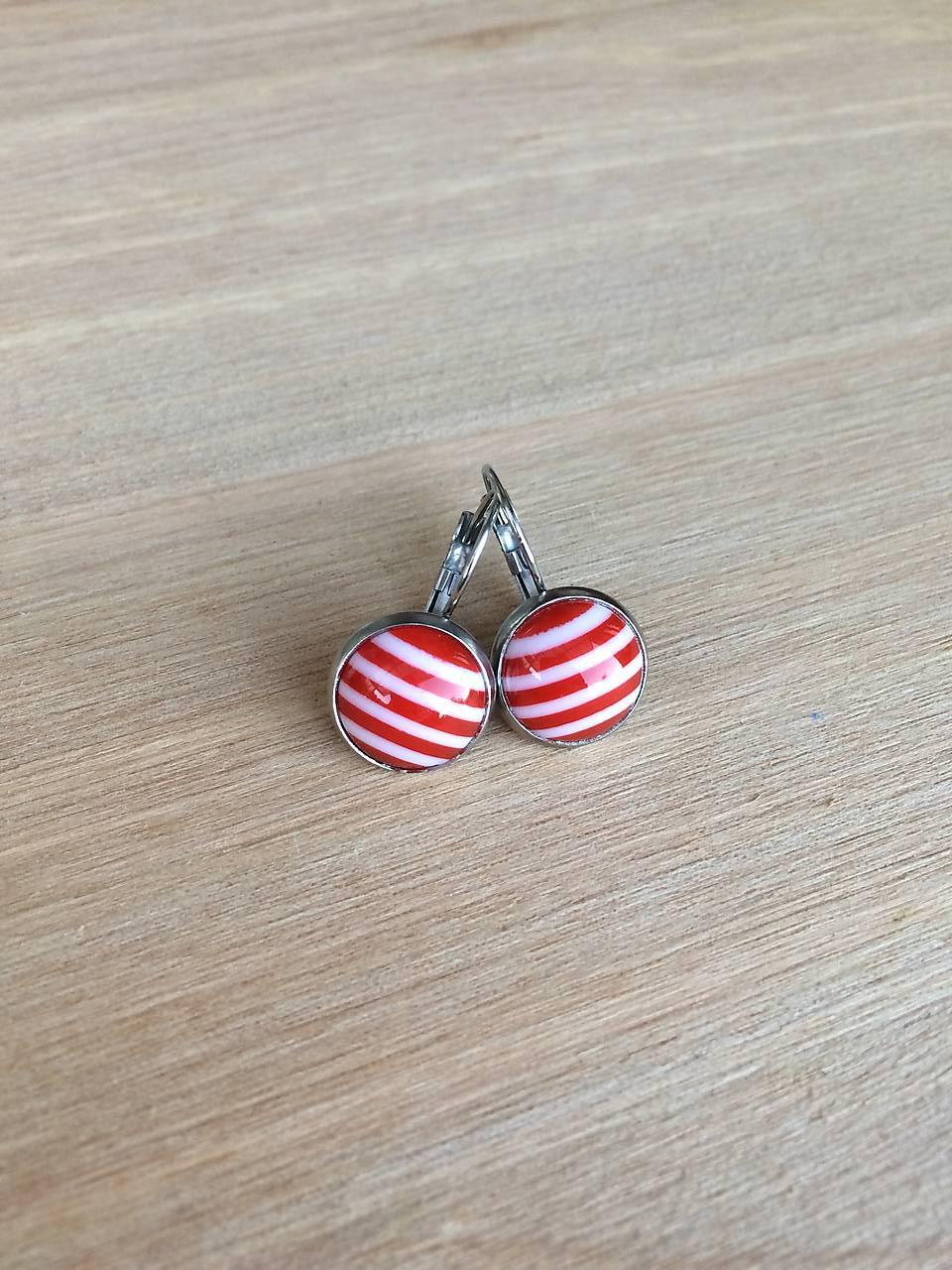 letné náušnice v bielo červenej farbe, dĺžka 2,5 cm, priemer lôžka 12mm....komponenty z ocele odolné voči vode a zmene povrchu...