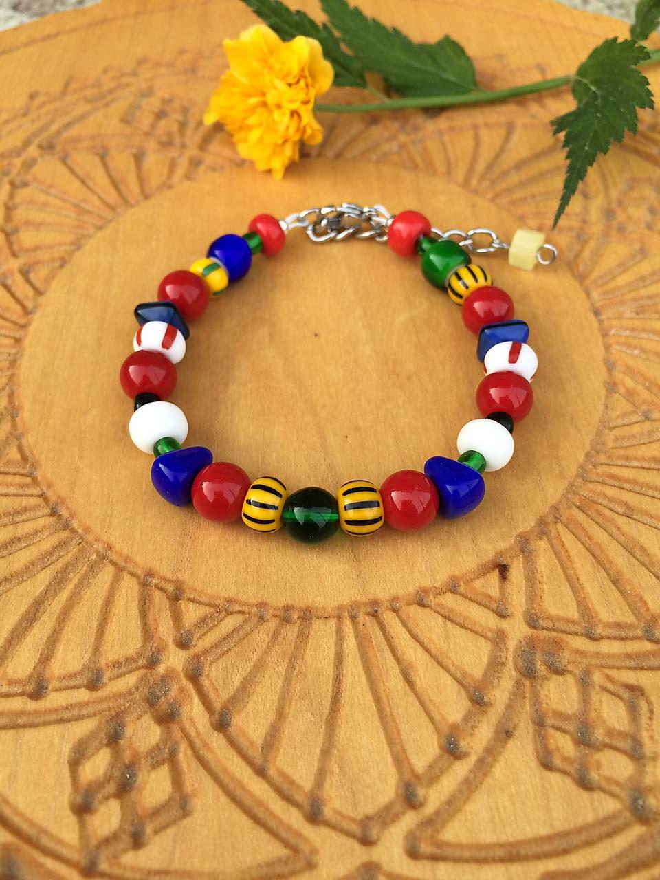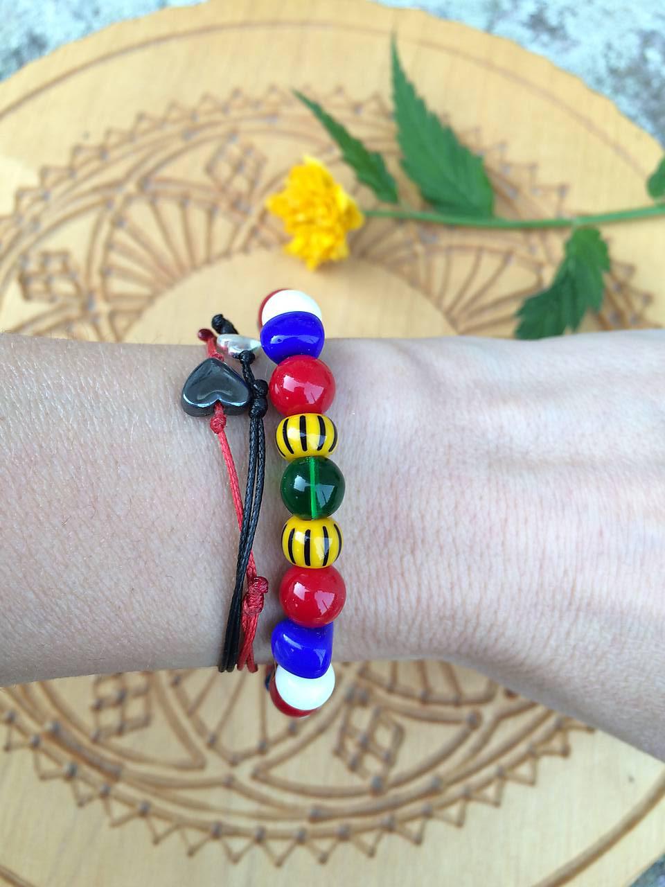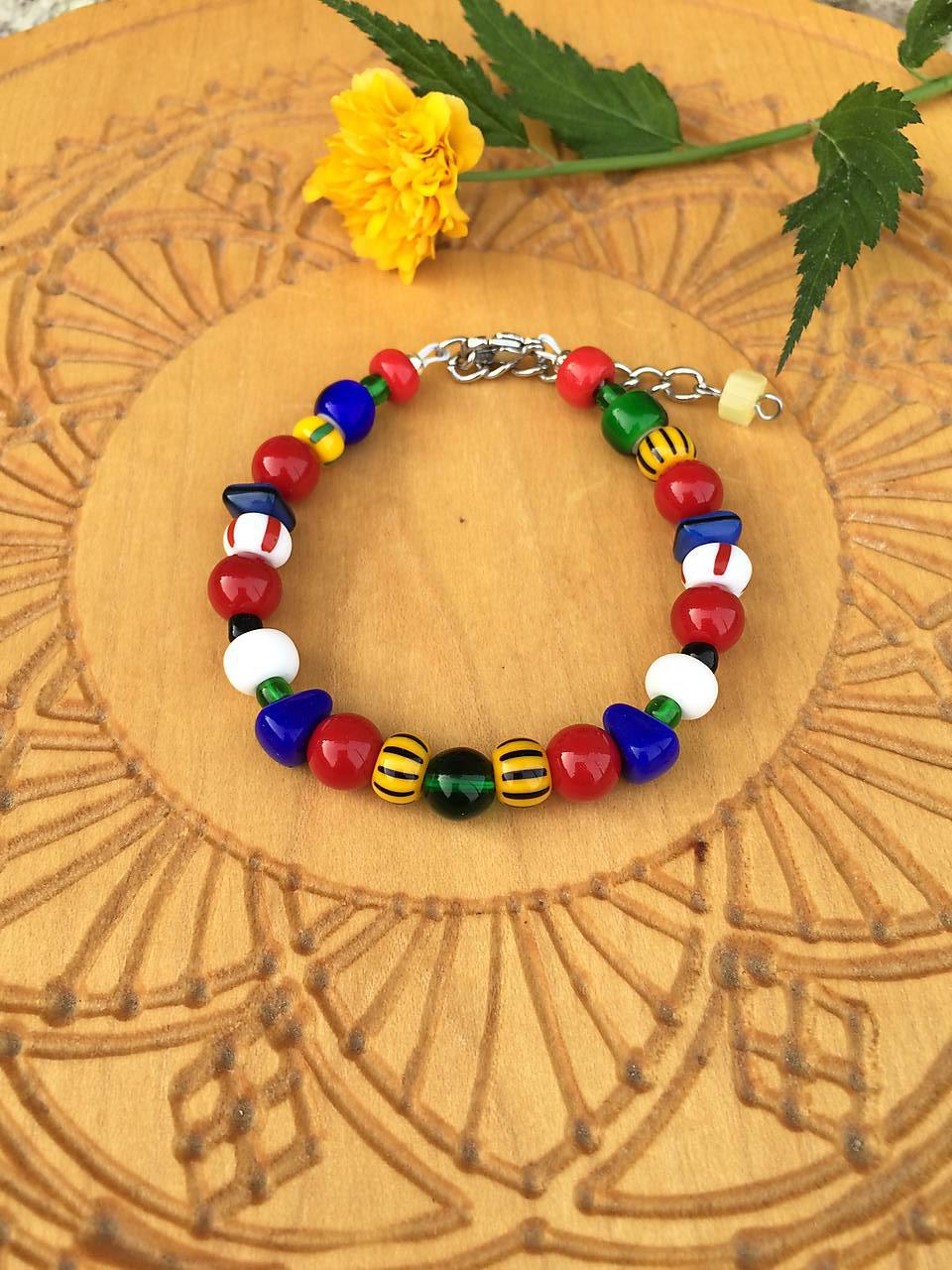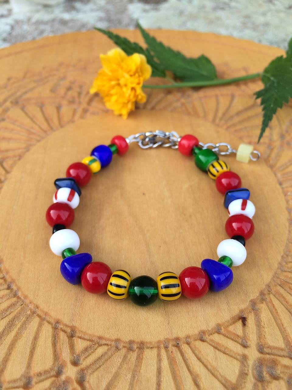 náramok vyrobený z keramických a sklenených korálok, zapínanie z chirurgickej ocele......