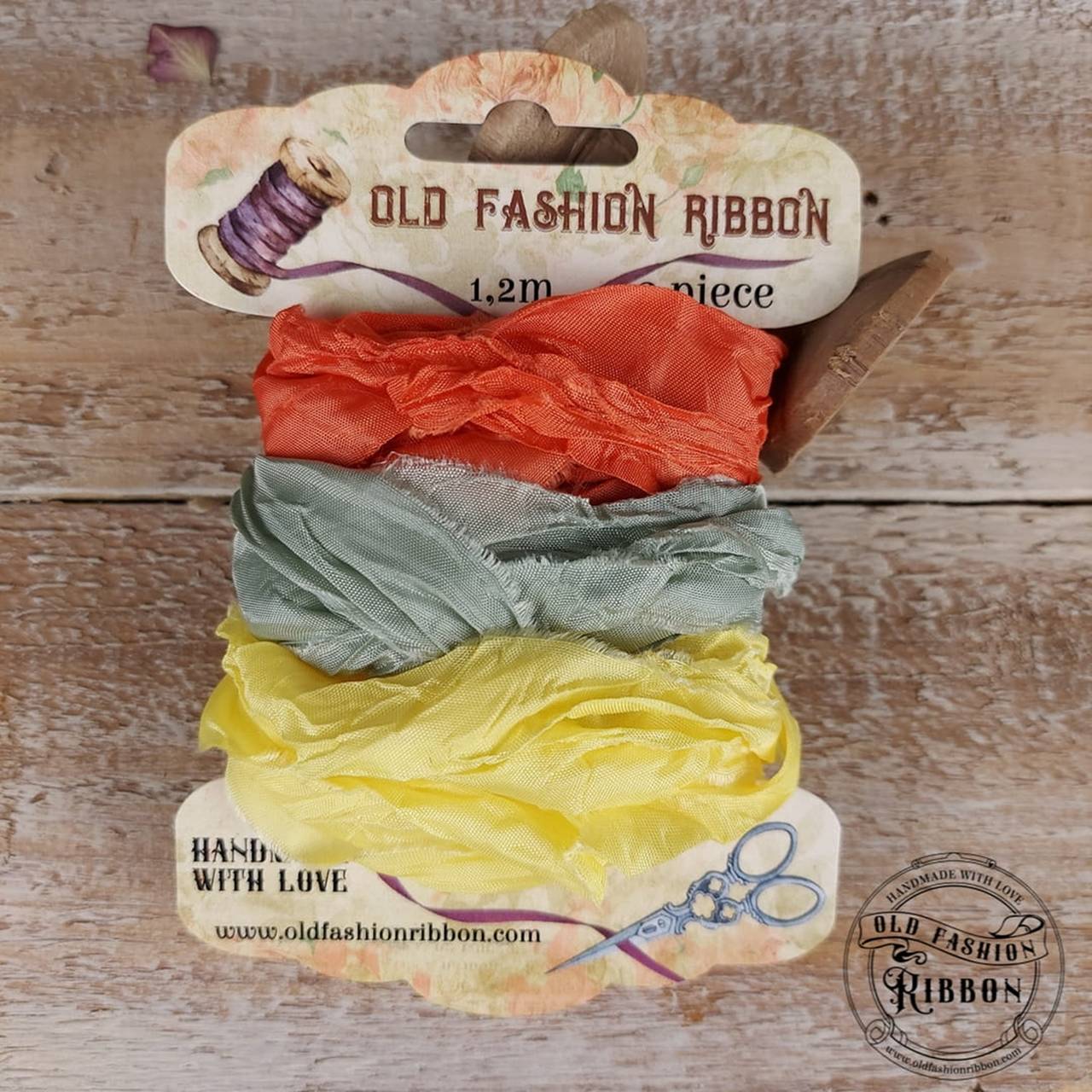 Sada saténových vintage stúh, farebne zladených k scrapbookovému papieru Childhood. Stuhy sú ručne vyrábané z tkanín najvyššej kvality, pokrčené s rozstrapkaným okrajom. Ideálna pre journaling, scrapbooking, decoupage, floristika, výroba šperkov a mnoho ďalších projektov. Tieto stuhy v starom štýle dodajú každému projektu punc jedinečného šarmu. Na cievke sú navinuté tri stuhy, každá v dľžke približne 1,2 až 1,4 m. Šírka stuhy je 2 cm.
