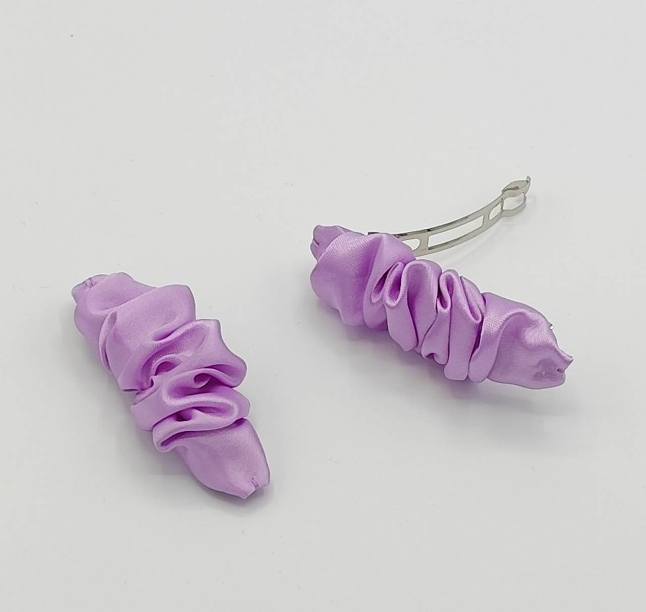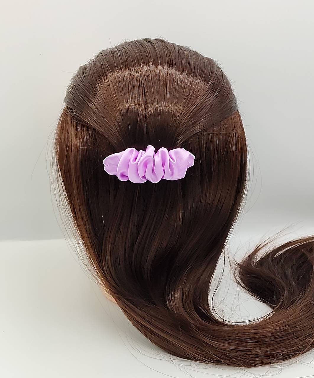 Saténová spona do vlasů scrunchie barrette ve světle fialové barvě. Je vhodná jako každodenní módní doplněk k sepnutí vašich vlasů.
