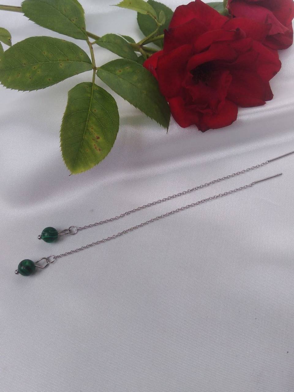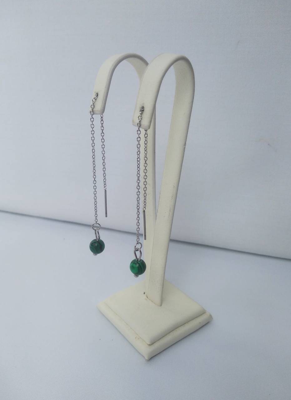 Jemné, elegantné, moderné, visiace náušnice z chirurgickej ocele s minerálom rekonštruovaný malachit veľkosti 6 mm.
