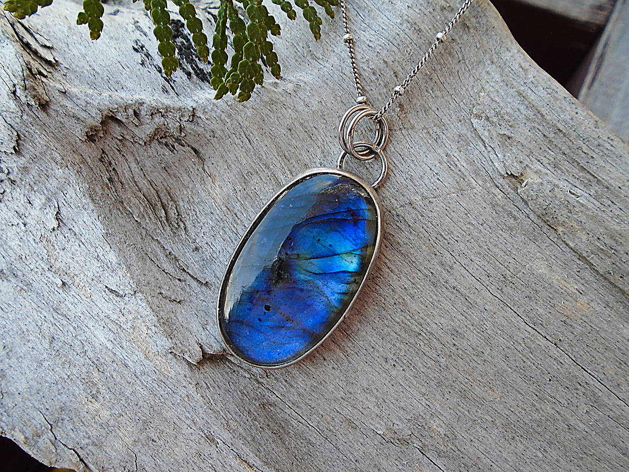 Osadený je krásny kabošon Labradoritu. Krásny kamienok s úžasným farebným odleskom a úžasnou kombináciou farieb.