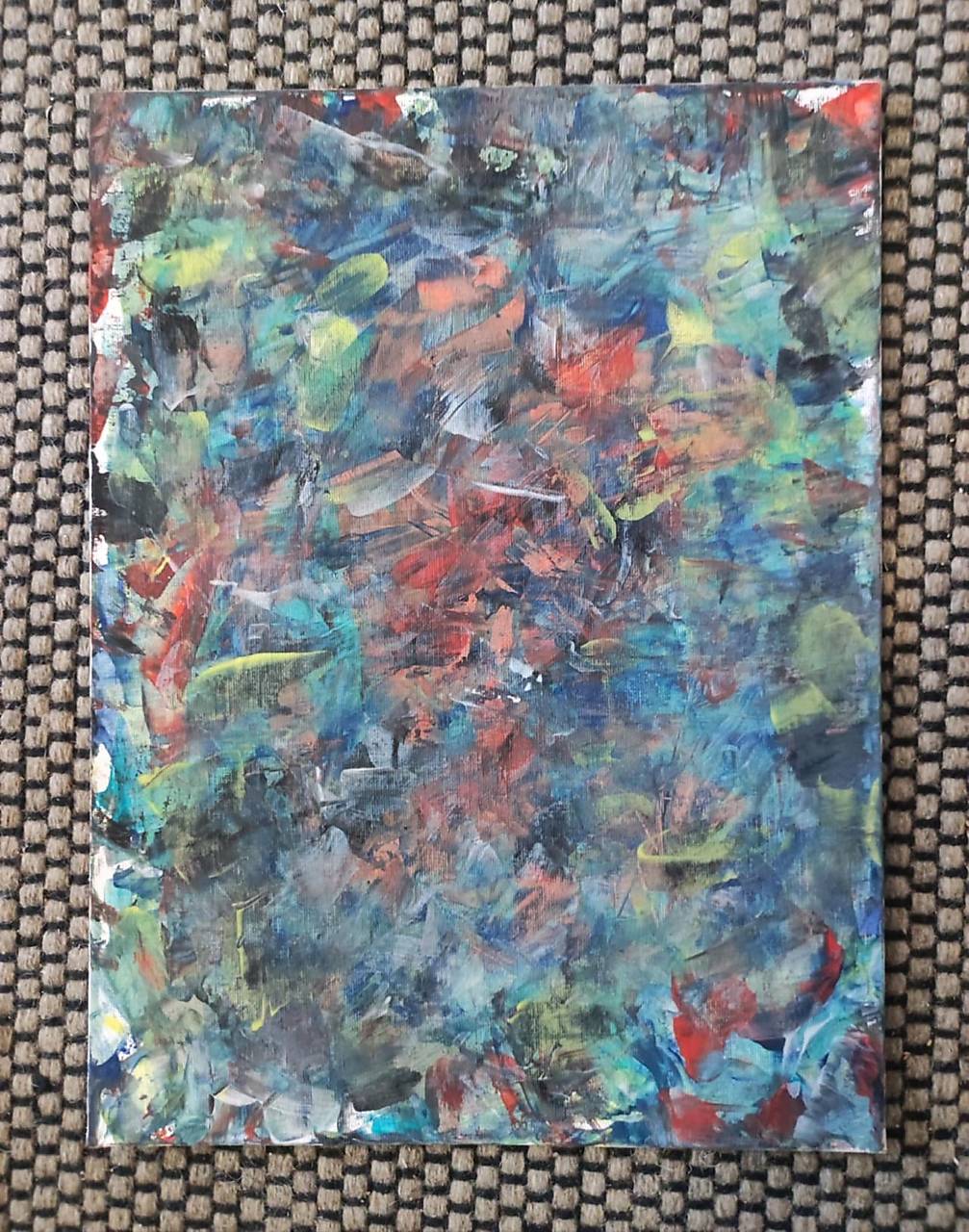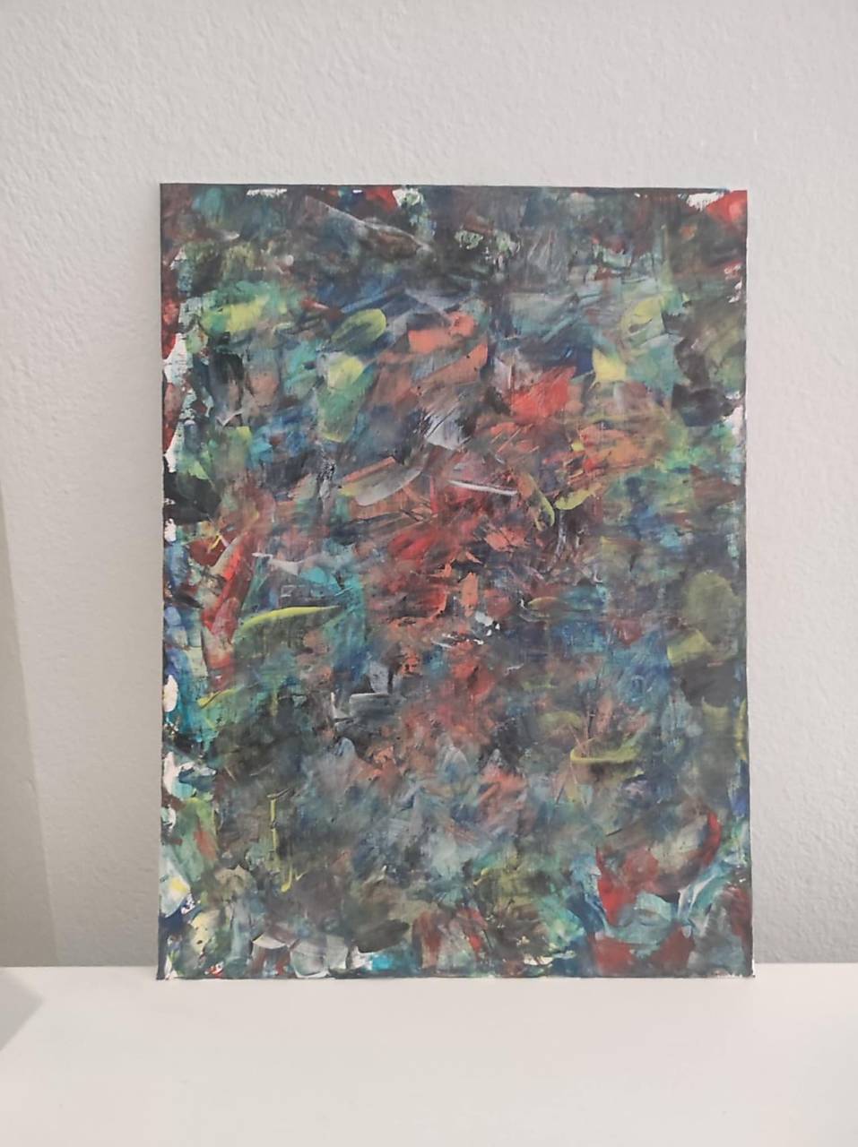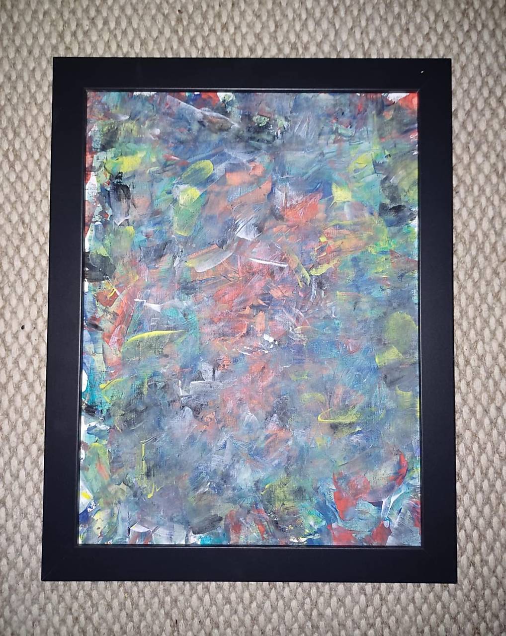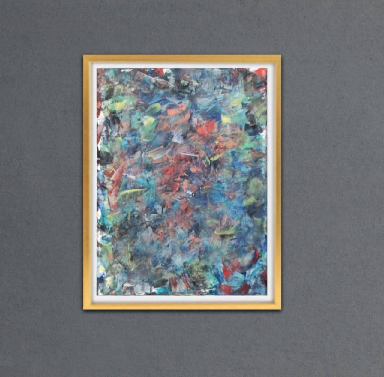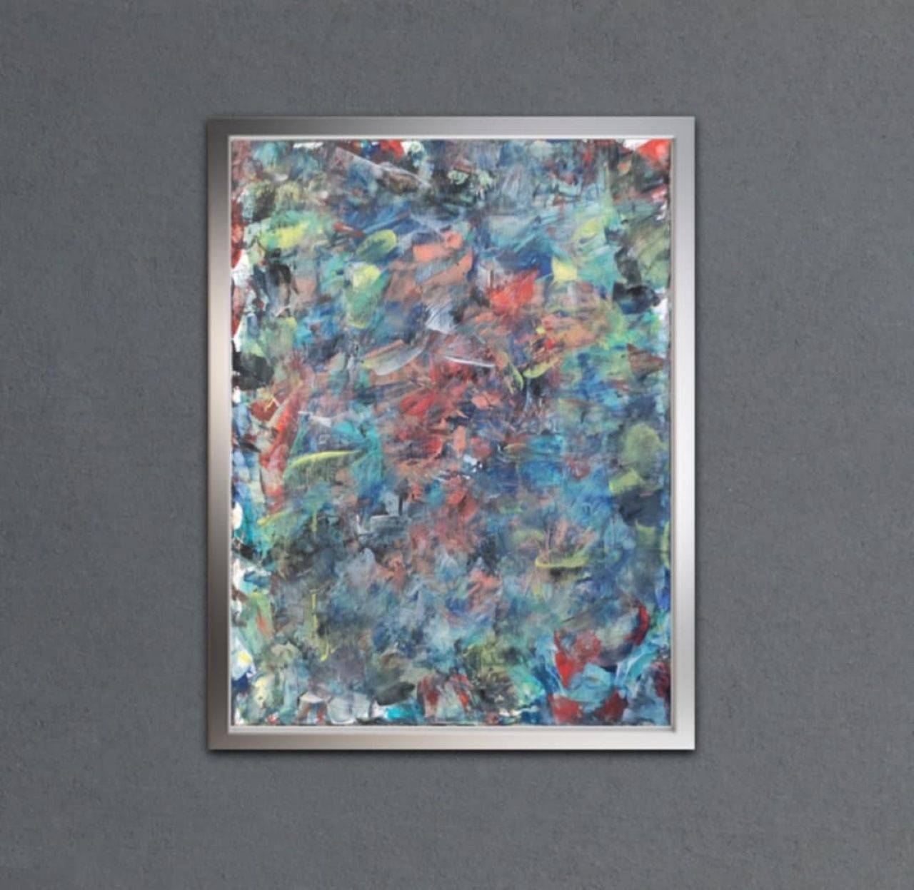 Farebná abstraktná maľba akrylom na bavlnenom plátne, ktoré je na papiery. Pre 3D efekt, treba maľbu zarámovať. Rám nie je súčasťou maľby. Uvedená veľkosť maľby je bez rámu. Vizualizácia nemusí sedieť s veľkosťou obrazu.