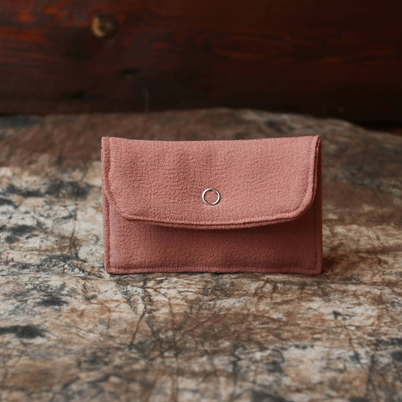 Toto púzdro na mince vzniklo upcykláciou starého kabáta a nesie v sebe myšlienku pomalej a zodpovednej tvorby. Mäkký textil v staroružovom odtieni pôsobí hrejivo a prirodzene, zapínanie na kovový cvok zabezpečí, že mince či drobnosti zostanú vždy na svojom mieste.