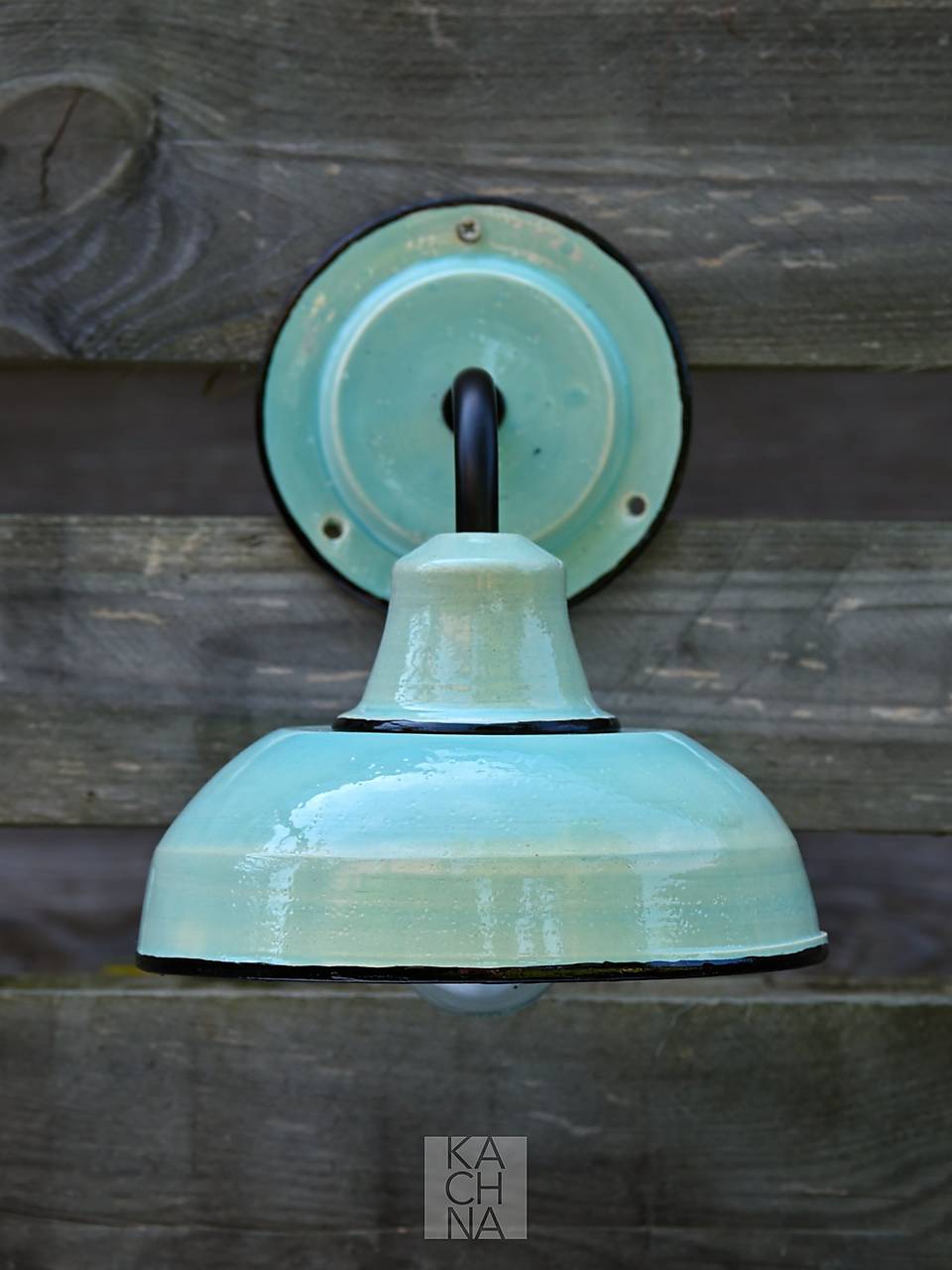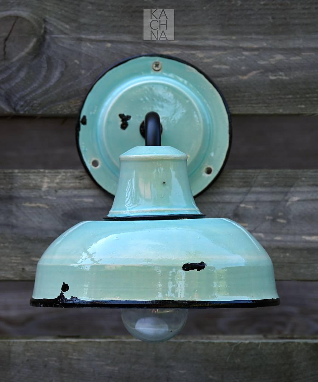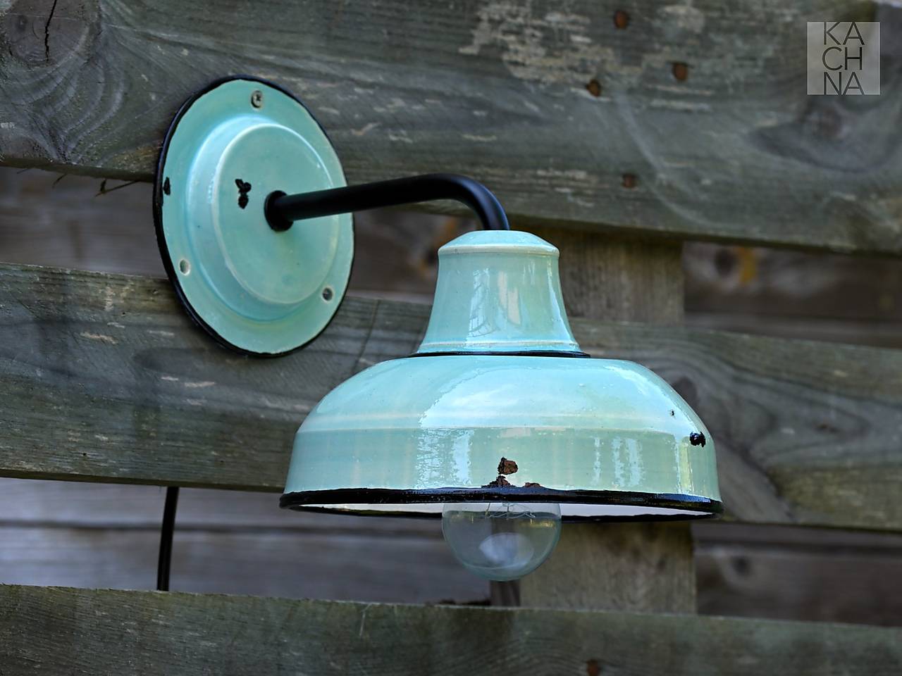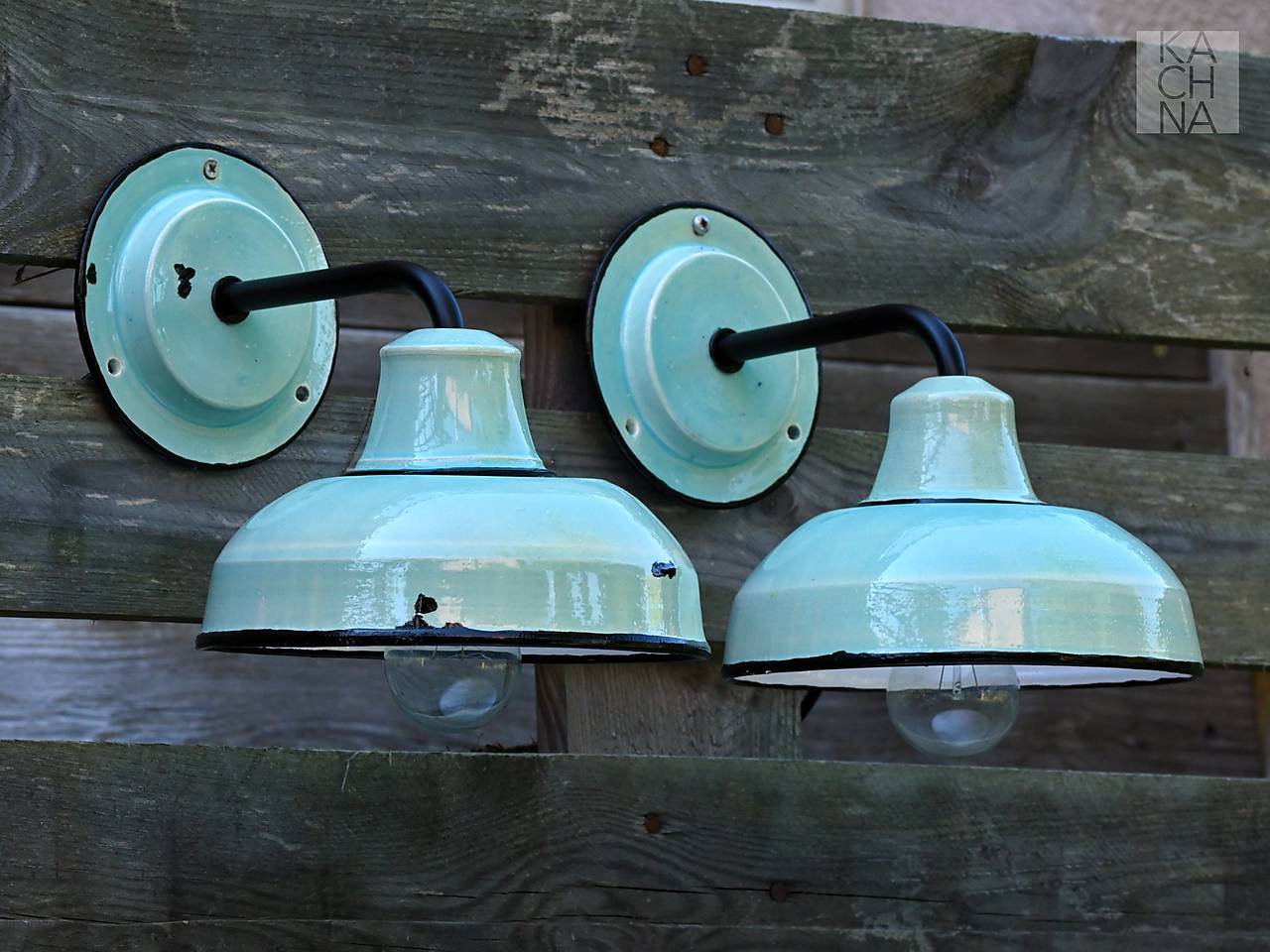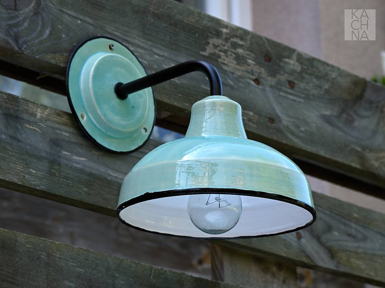 Světle tyrkysové keramické nástěnné lampy vyrobené na hrnčířském kruhu. Vintage styl à la plechová smaltovaná lampa.