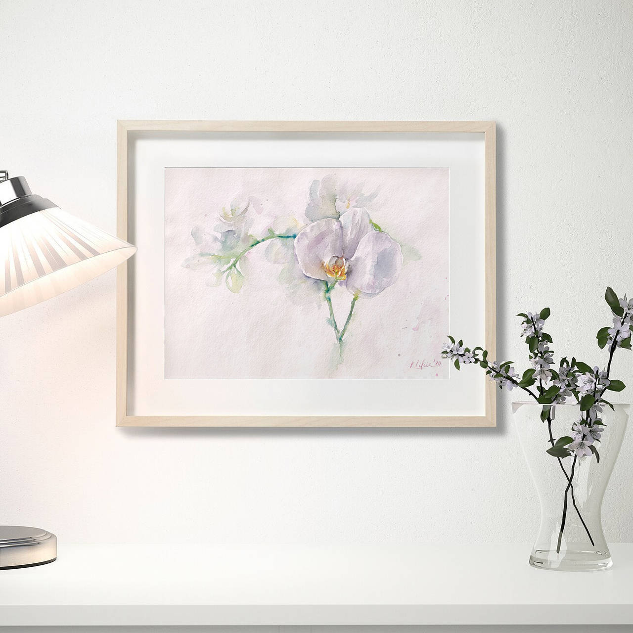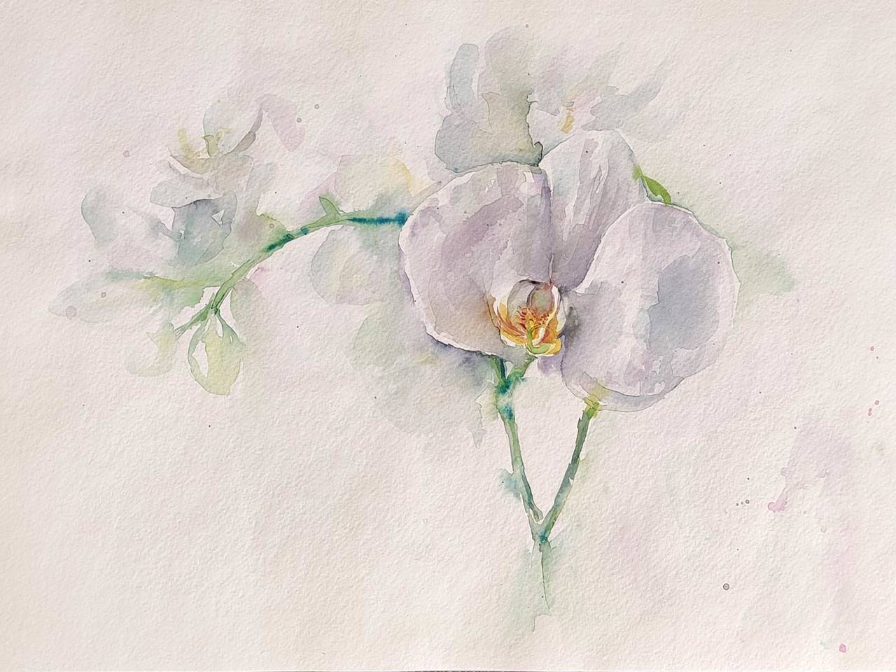 Obraz Orchidea je maľovaný akvarelovými farbami na 300g akvarelovom papieri (50% bavlna).
