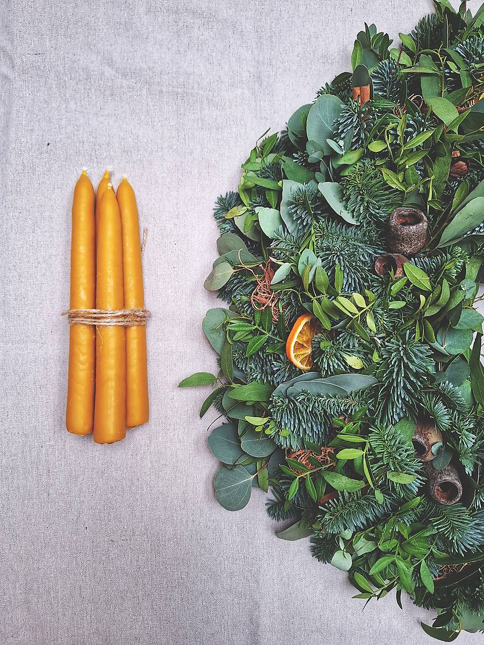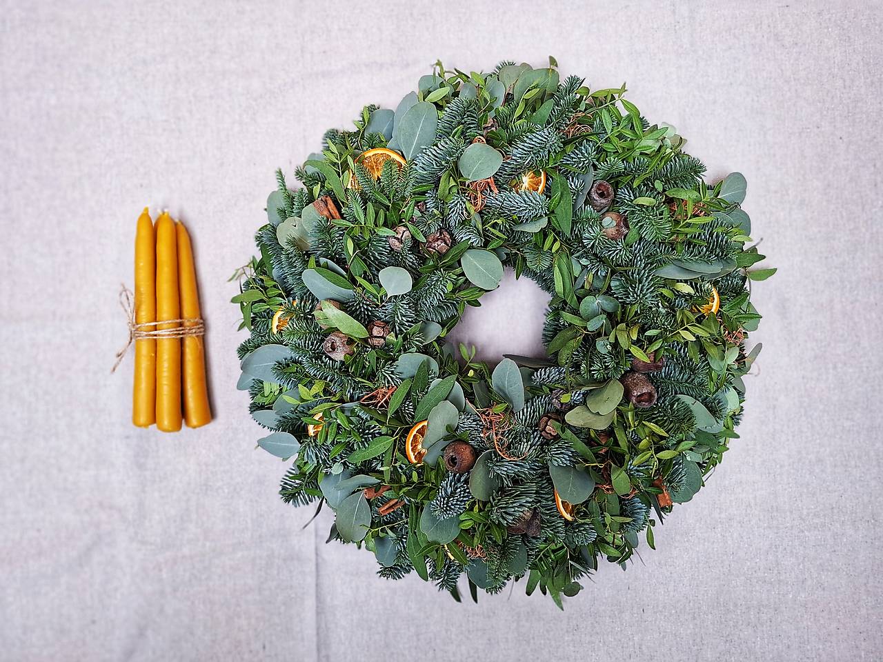 Veniec sa predáva bez sviečok. Sviečky na fotke sú na inšpiráciu.