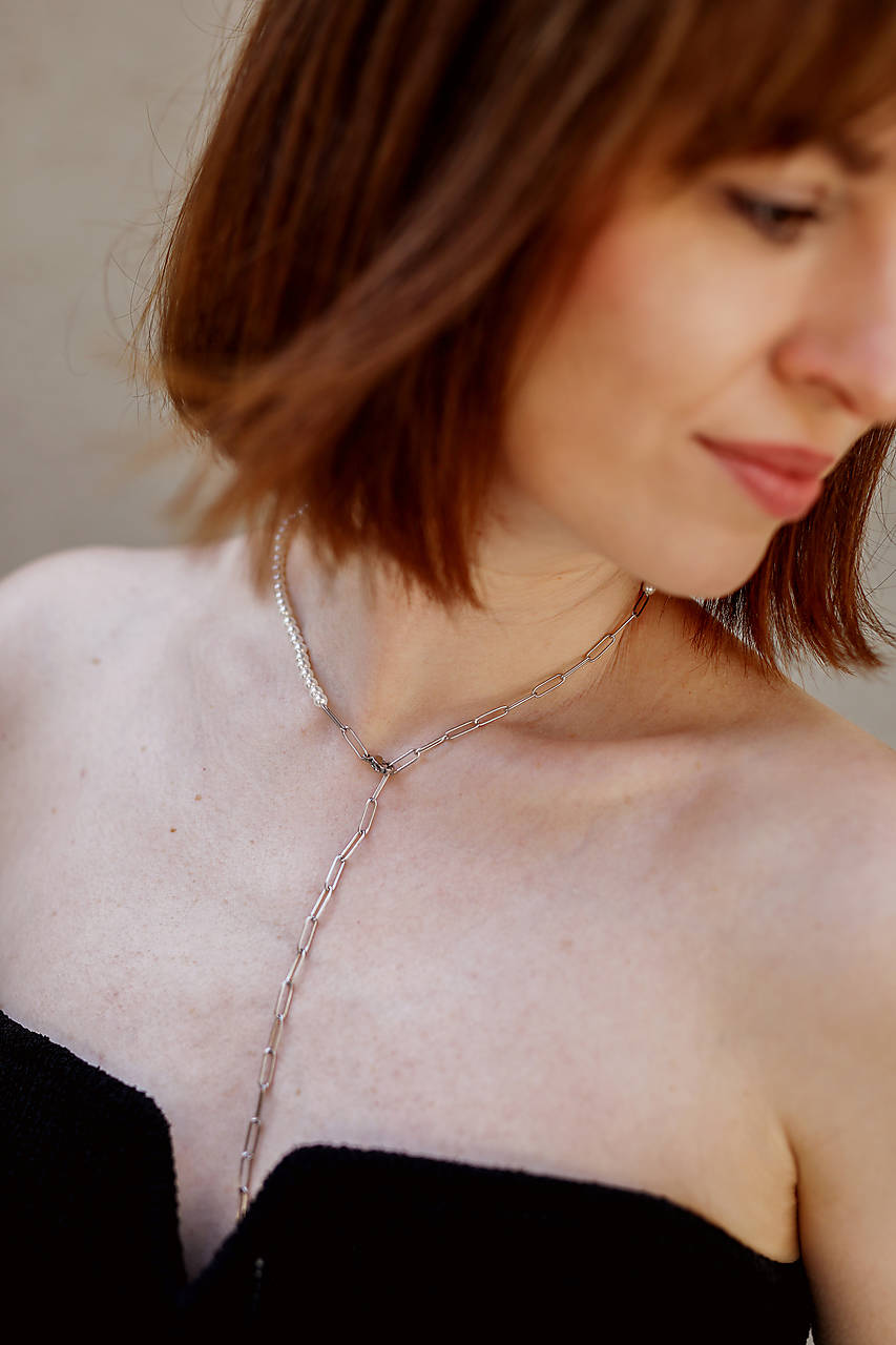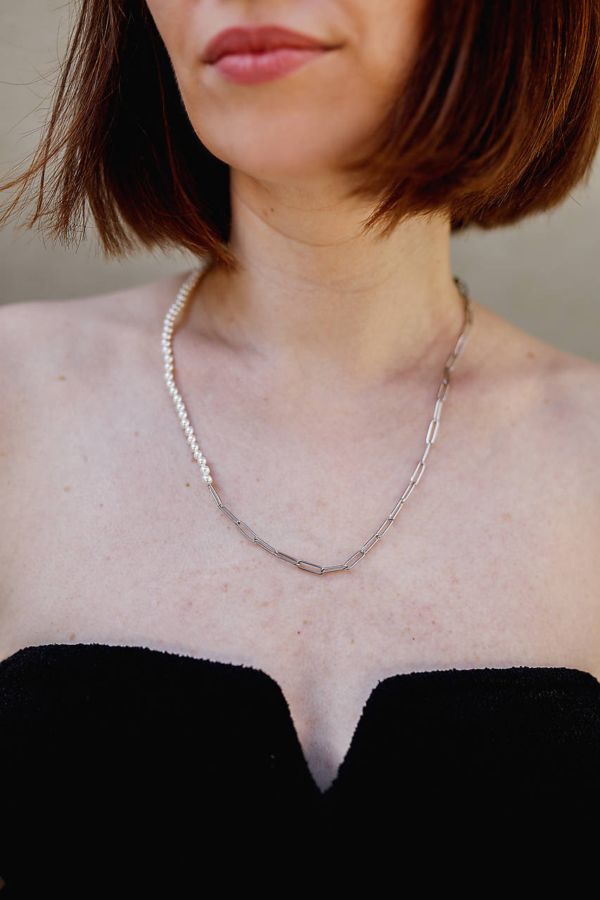 Jednoduchý minimalistický náhrdelník z 4 mm mušľových (shell) perál na silone v kombinácii s retiazkou z chirurgickej ocele a karabínkovým zapínaním. Náhrdelník je vhodný ako pre muža, tak aj pre ženu. Jedná sa o unisex kúsok, ktorý viete nosiť na viacero spôsobov. Cena je za jeden náhrdelník. POZOR! Na mužských fotografiách je vyobrazených viacero náhrdelníkov. Pokiaľ vám uvedená dĺžka nevyhovuje je potrebné do poznámky napísať akú dĺžku ste si zvolili. Správnu dĺžku si vyberte pomocou tejto pomôcky. V prípade ak máte záujem o čisto perlový náhrdelník, tak si ho viete objednať tu.