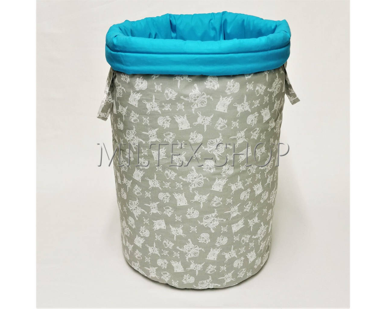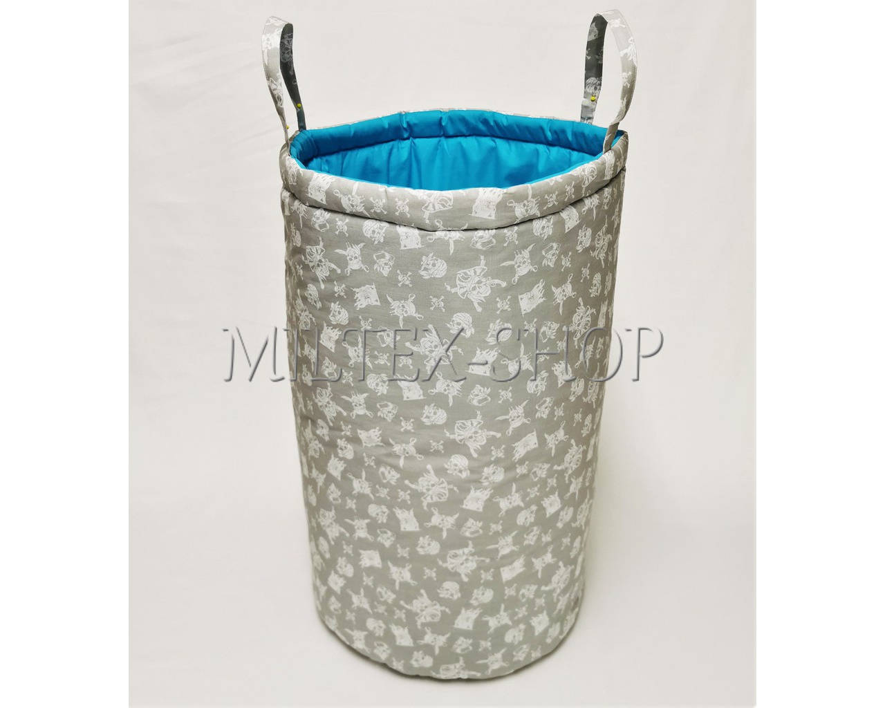 Oboustranný látkový koš na hračky, můžete měnit barvu dle přání. Povrch 100% bavlna, koš vyztužený vatelínem proto drží tvar i když je prázdný, nahoře jsou všité uši pro snadné přenášení. Rozměr výška cca 58cm, průměr cca 34cm. Snadná údržba, lze prát v pračce.