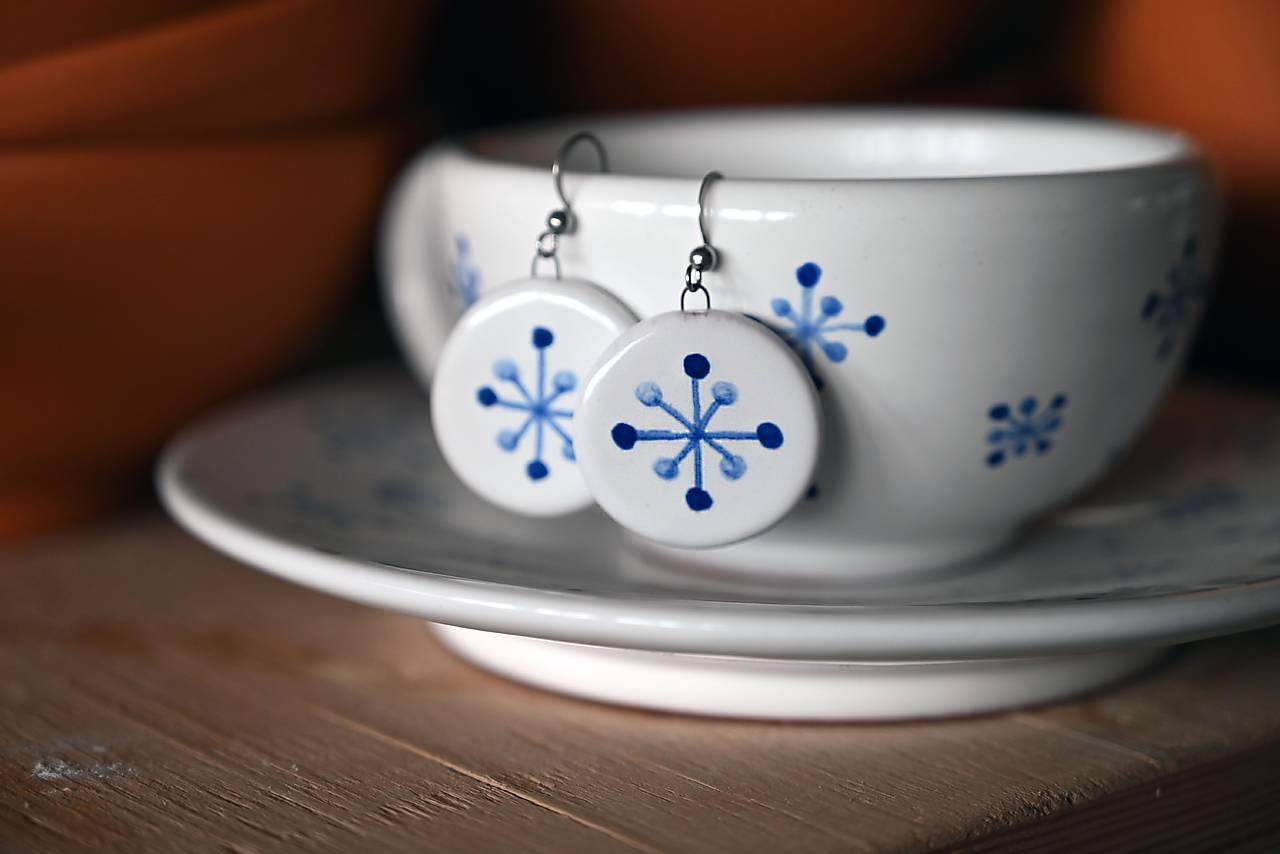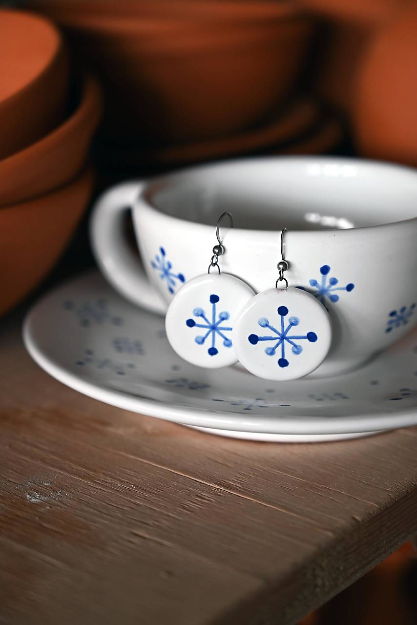 Nechajte sa očariť tradíciou a eleganciou ručne vyrobených náušníc inšpirovaných ornamentikou modranskej majoliky. Každý pár je jedinečným umeleckým dielkom, ktoré vzniklo v našej dielni s láskou k tradičnému remeslu.