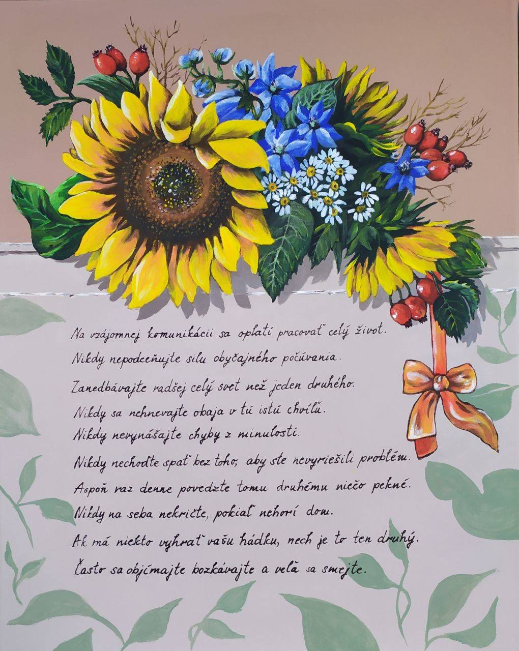 Namaľujem pre vás originálny obraz s ručne napísaným želaním či gratuláciou, presne podľa vašich požiadaviek a priloženej predlohy, vhodný ako svadobný dar alebo k výročiu.