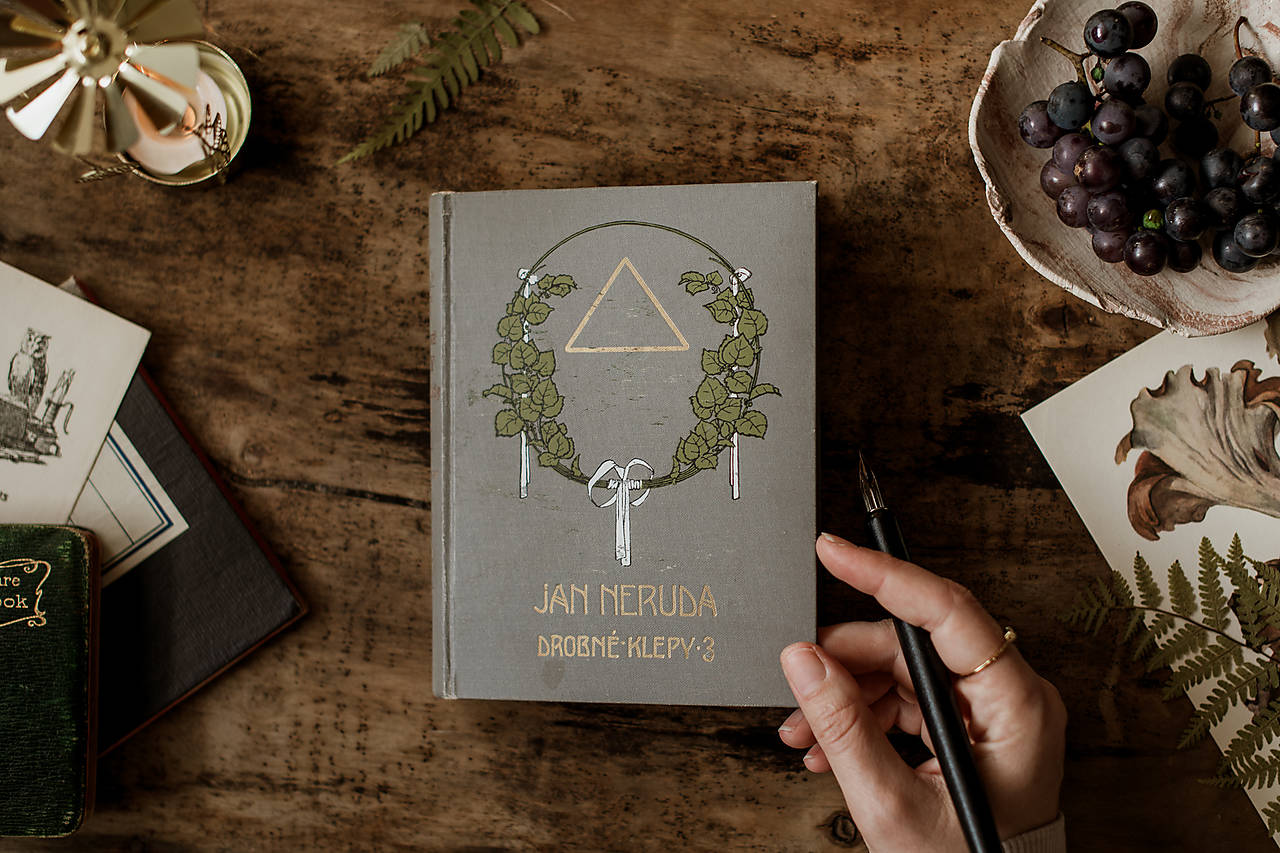 Jan Neruda - Drobné klepy. 180 strán, 135 x 175 mm. Antikvariátna väzba so striebornou ražbou.