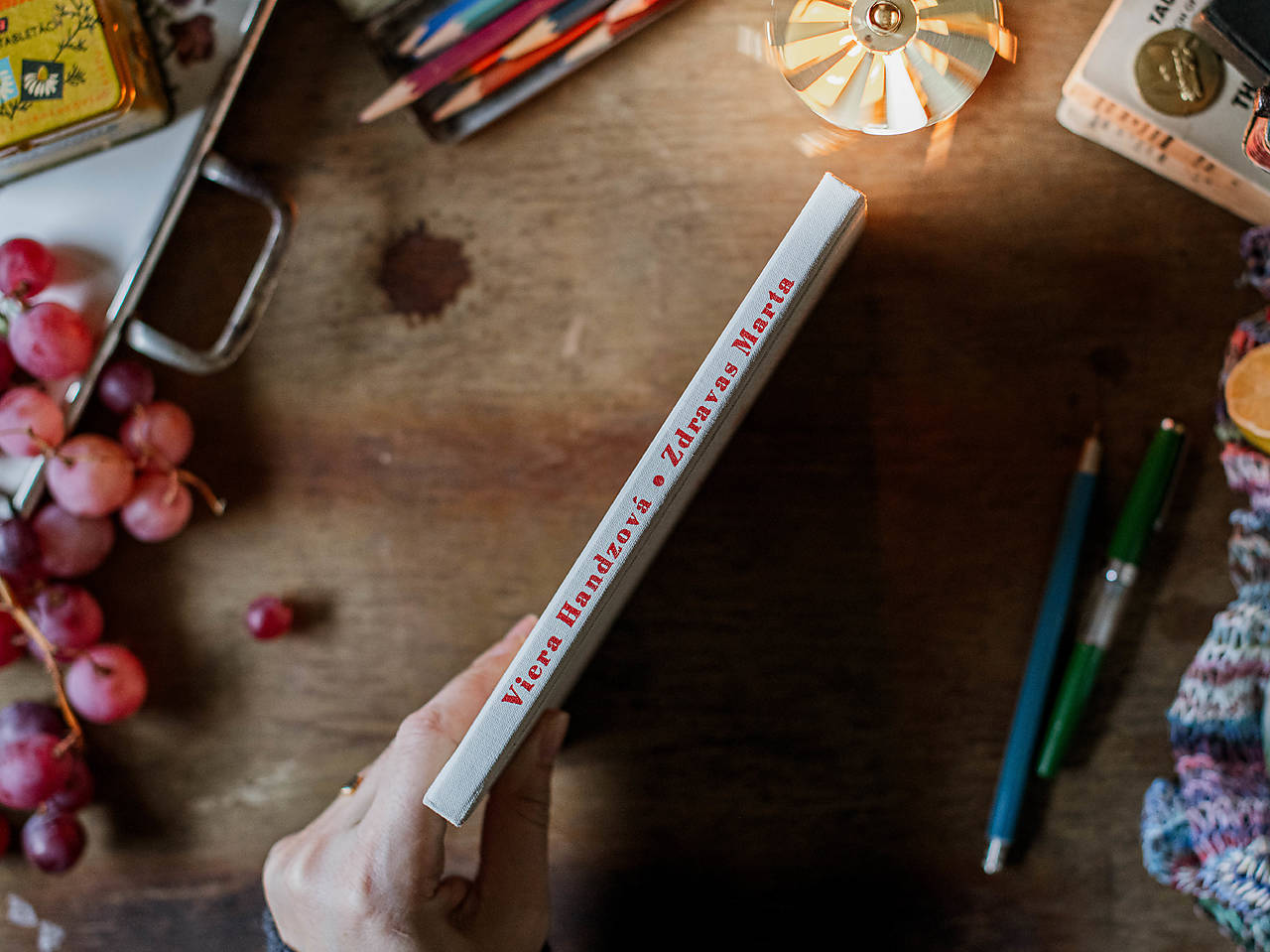 Viera Handzová - Zdravas Marta. 100 strán, 130 x 205 mm. Textilná väzba s ražbou.