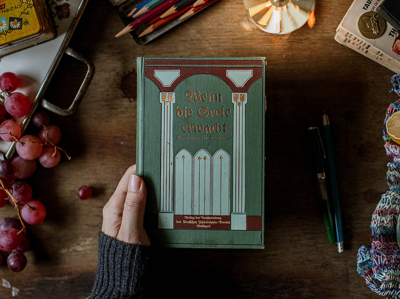 Wenn die Seele erwacht. 140 strán, 125 x 185 mm. Pekná antikvariátna väzba s ražbou. Trhané okraje strán.