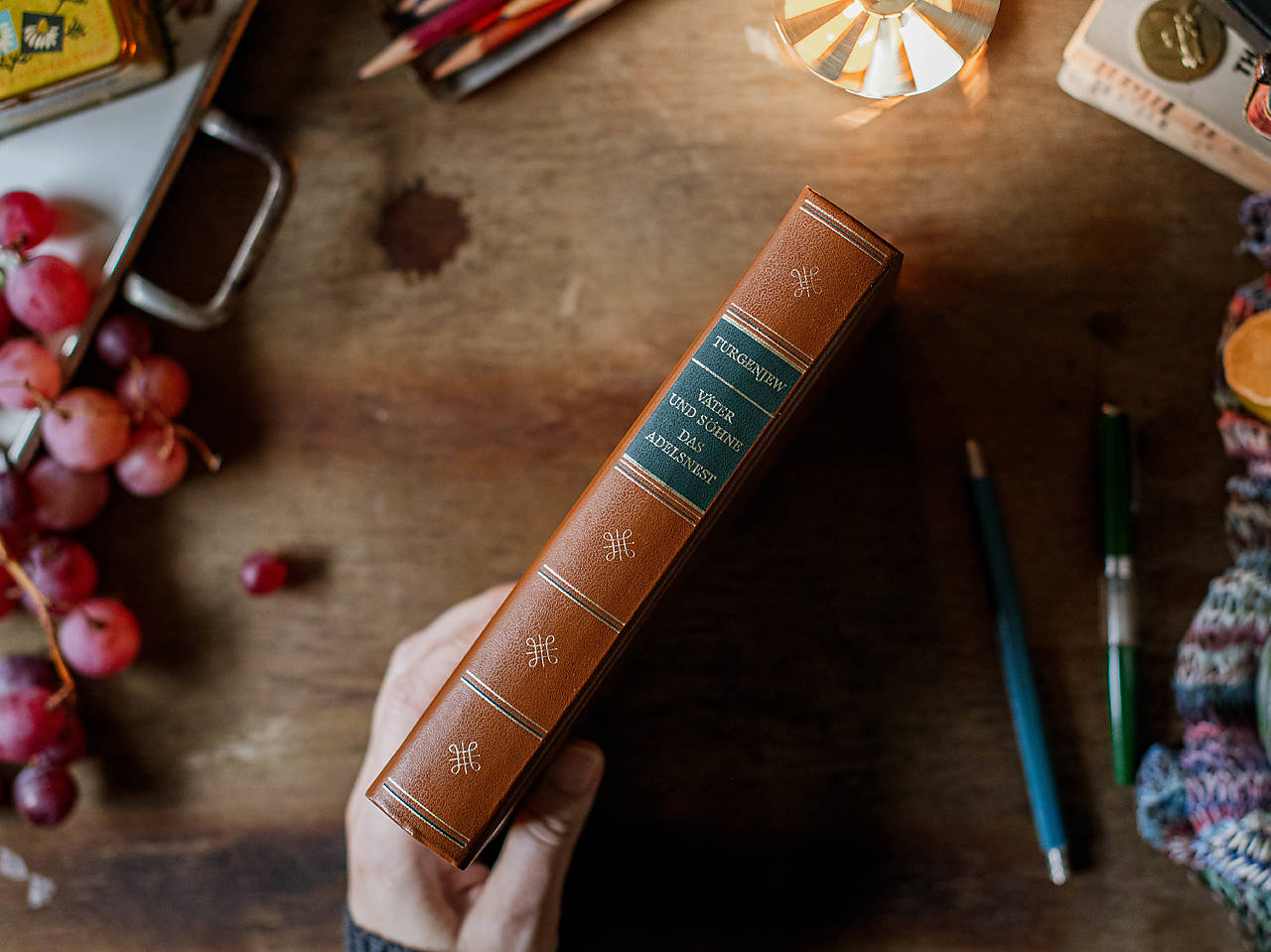 Turgenjev - Väter und Sohne das Adelsnest. 104 strán, 135 x 205 mm. Aantikvariátna väzba so zlatou ražbou. Trhané okraje strán.