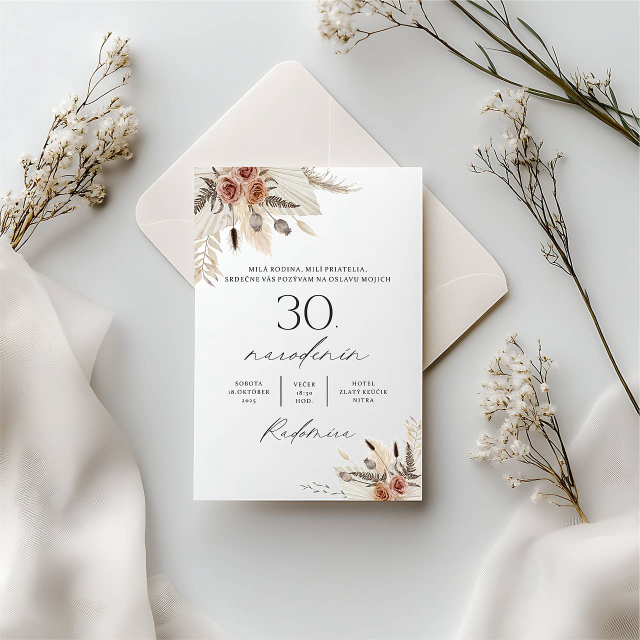 V cene pozvánky je zmena mien, dátumu a miesta konania. Zmeny textu alebo písma budú spoplatnené. Ak chcete pozvánku upraviť, informujte sa pred objednaním na možnosti úprav a cenu v správe.