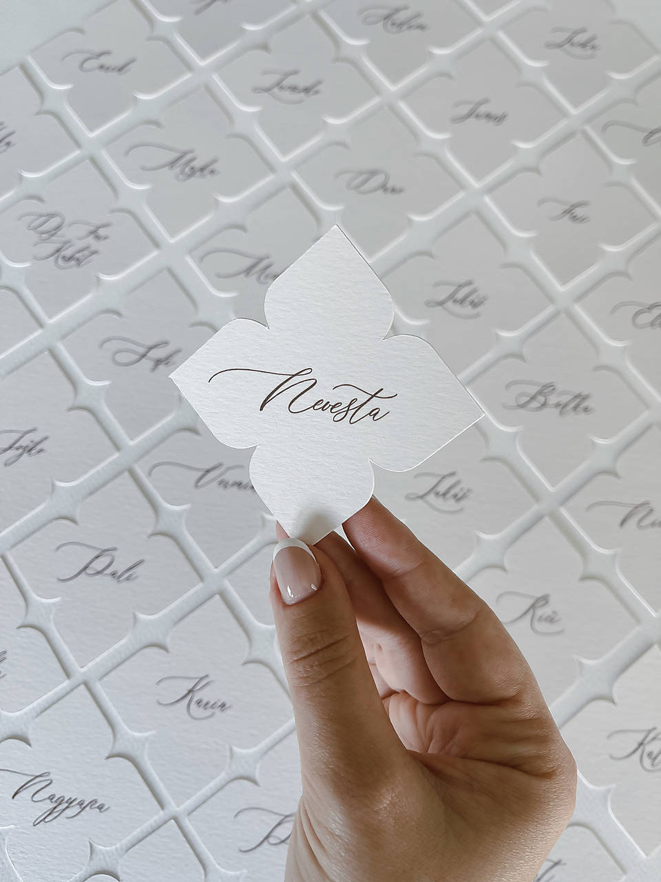 Minimalistické menovky v tvare kvietku na 300g kreatívnom papieri.