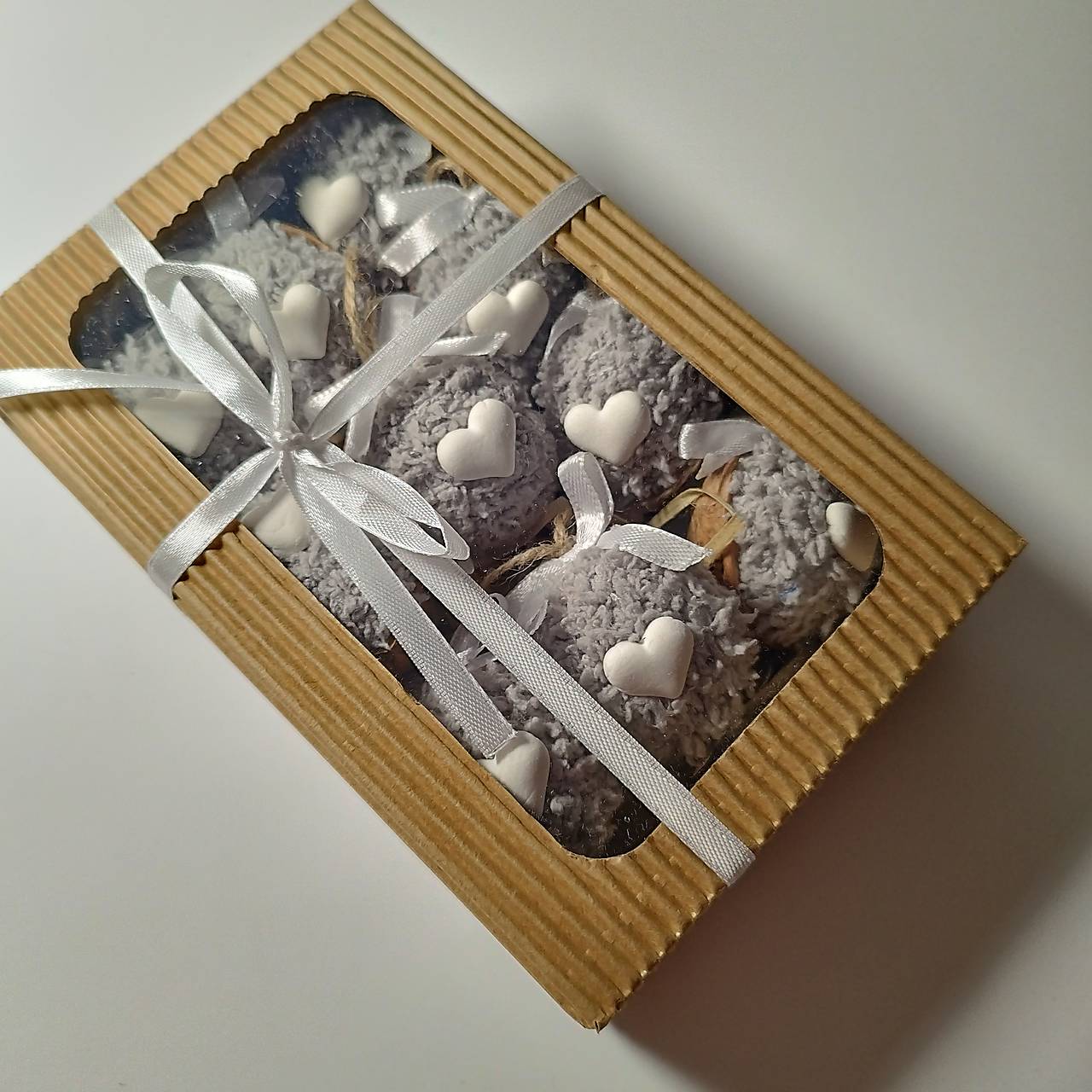 Srdiečka sú ručne modelované zo samotvrdnúcej hmoty.