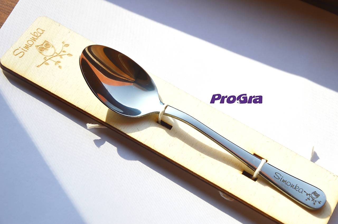 kávová / čajová lyžička dekorovaná ozdobným gravírovaním s nápisom podľa priania na gravírovanej doštičke z drevenej preglejky.