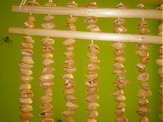 Tento nápad som už dlho nosila v hlavičke, stále som zbierala škrupinky z pistácií, že raz z toho niečo vytvorím. Veľmi sa mi páči jednoduchosť v tvorení. A tu je výsledok...Už sa teším na ďalšie osvietenie a celá rodinka bude "musieť" konzumovať tieto výborné oriešky.:)