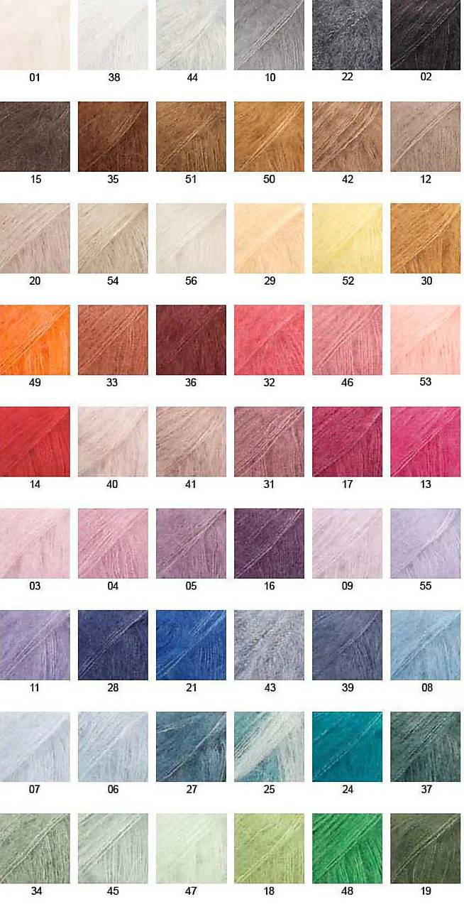 Cardigán je ručne pletený z najjemnejšej priadze z mohéru a hodvábu. Táto luxusná, vzdušná priadza je česaná a tvorí ju exkluzívna zmes 75 % super kid mohéru a 25 % hodvábu. Je ľahká ako pierko a dostupná v 27 nádherných odtieňoch.