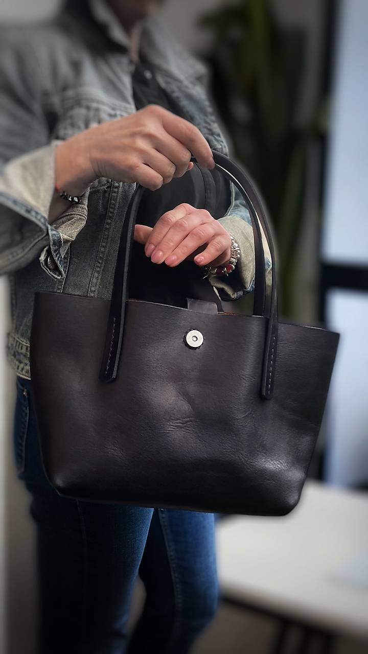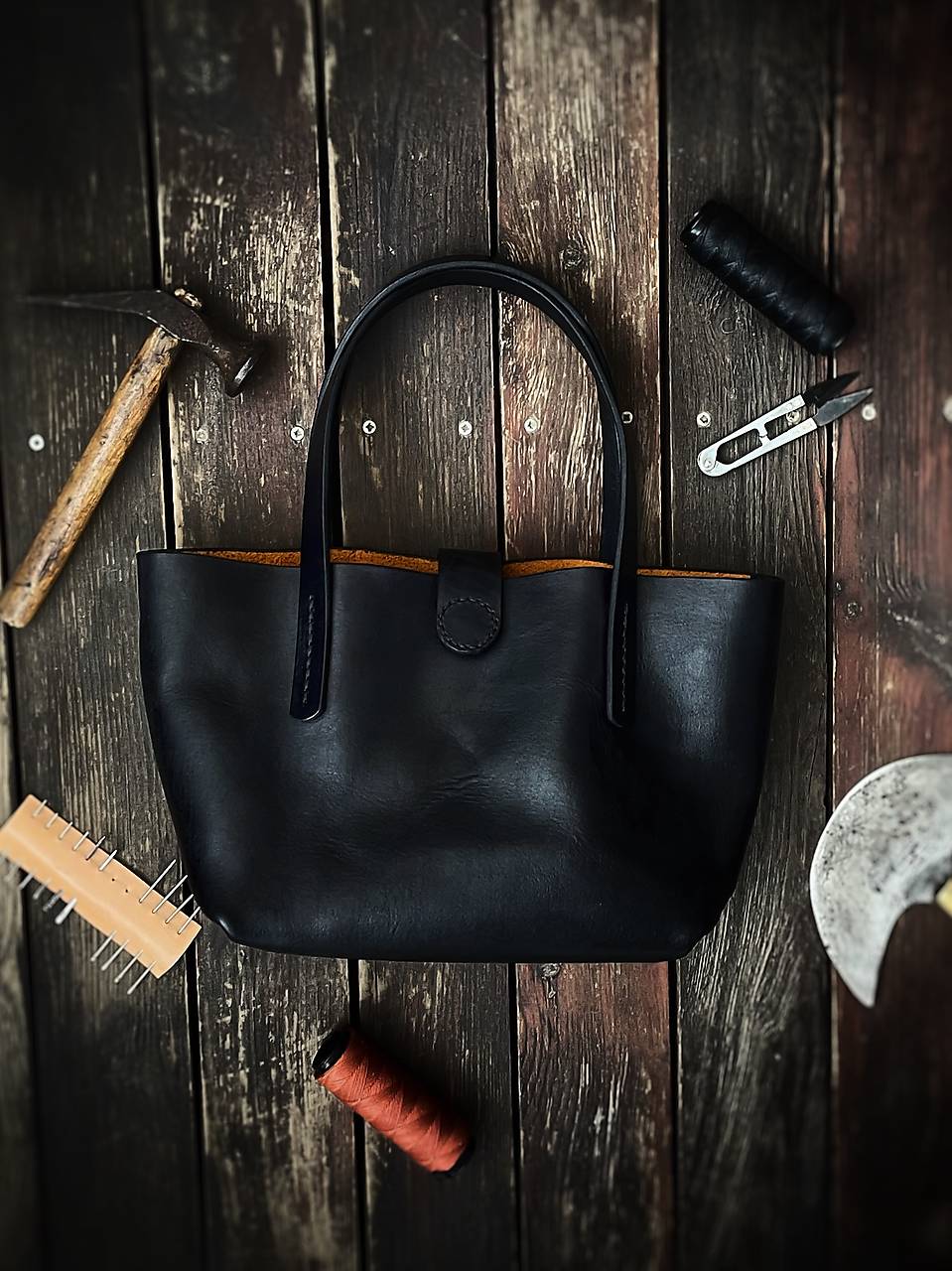 Je vyrobená z prírodnej hovädzej kože- hladenice. Je ručne farbená, voskovaná a olejovaná prŕodnými prípravkami. Celá kožená taška je šitá ručne, dvoma ihlami a voskovanou niťou, tradičným, sedlárskym stehom a bez použitia nitov. Vo vnútri tašky je praktické puzdro na mobil alebo kľúče. Zapínanie je riešené magnetickým klipom striebornej farby.