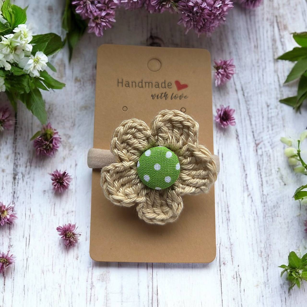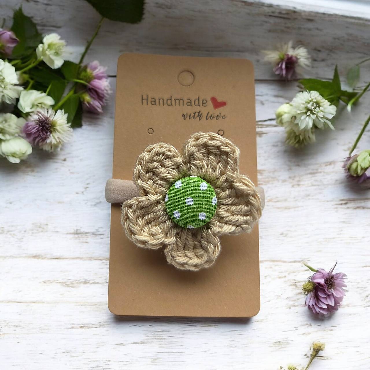 Gumička do vlasov je zdobená vlastnoručne vyrobeným textilným gombíkom a háčkovanou kvetinkou. Gumičky posielam pekne zabalené, aby ste ich mohli rovno aj darovať.