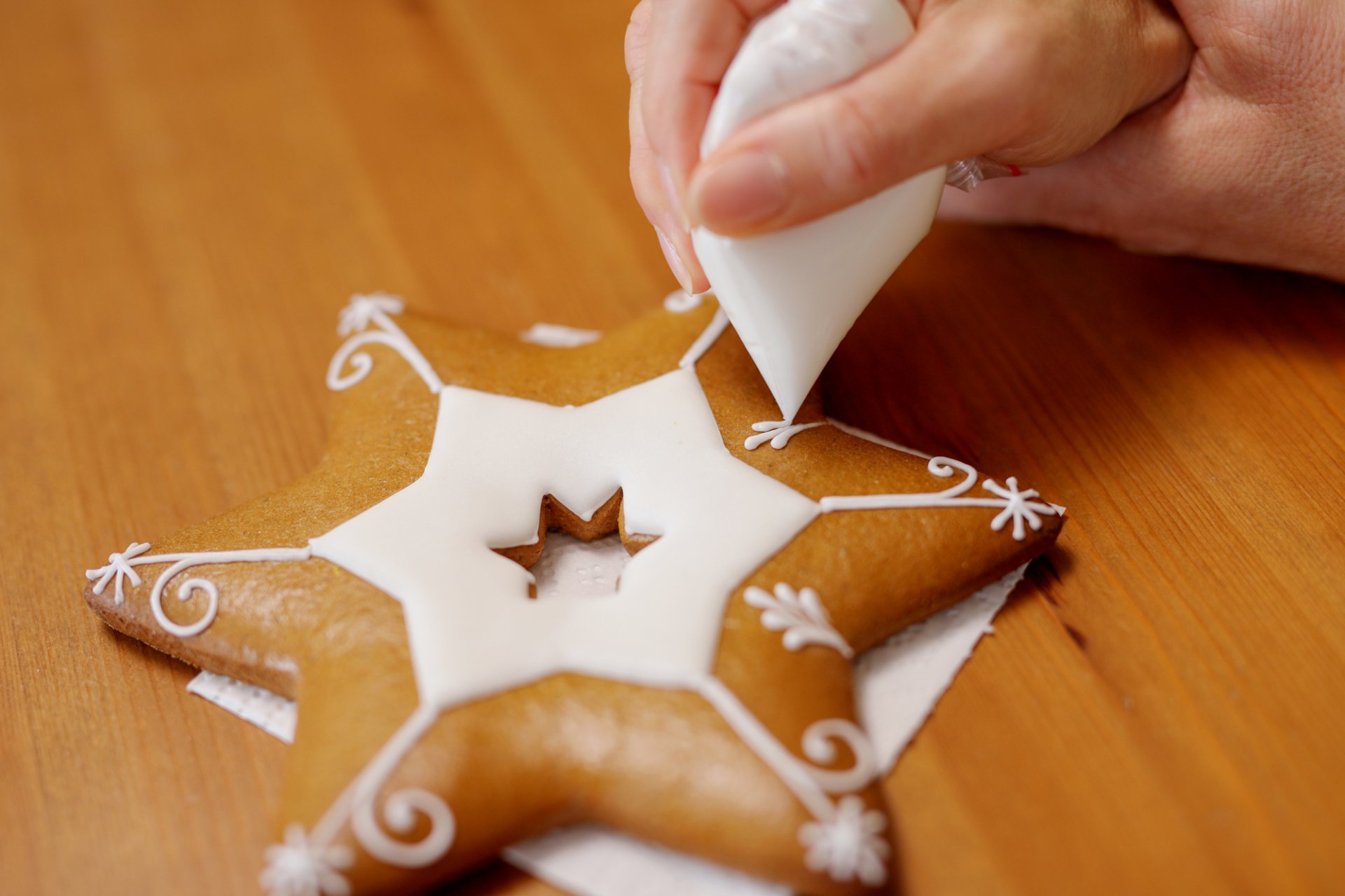 Samotná poleva dodá medovníčku tú krásnu pridanú hodnotu. Aj tu je recept vlastne veľmi jednoduchý, ale treba mať skúsenosť a trpezlivosť. Radím iba, že práškový cukor treba preosiať a polevu miešať, nie šľahať. Môže sa pridať voda alebo citrónová šťava, aby sme dosiahli potrebnú hustotu. Hustejšou polevou robíme okraje a jemné zdobenie, redšiu používame na vyplnenie plôch. Dnes je na trhu veľké množstvo potravinárskych farieb a dá sa jednoducho zdobiť aj farebné medovníky. Ale v tomto zastávam názor, že menej je viac. Aj keď vianočné, červeno-zelené zdobenie mám naozaj veľmi rada.