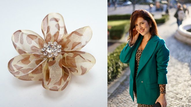 Ďalšie módne inšpirácie budú ešte v zemitých farbách, doplnené však čokoládovou a bordovou farbou, ktoré momentálne zažívajú boom. Outfity som doplnila novými brošničkami. Saténový materiál brošní evokuje hodváb, ktorý je teraz tiež veľmi vyhľadávaný, no cenovo náročnejší, takže satén je jeho dostupnejšou alternatívou. Nádherný lesk a k tomu prekrásne farby dodávajú nádych luxusu. Pridávam aj jemnú organzovú brošničku s leopardím vzorom, ktorý nás sprevádza touto módnou sezónou vo všetkých podobách módnych doplnkov.