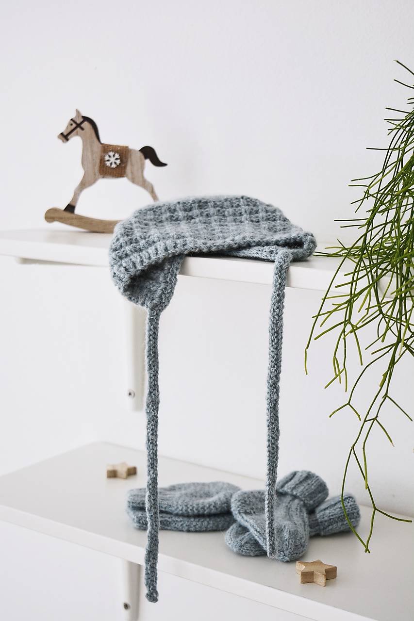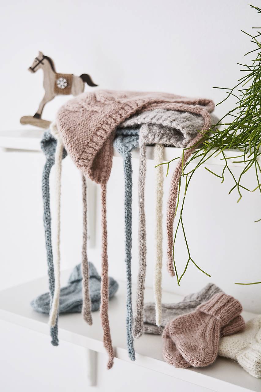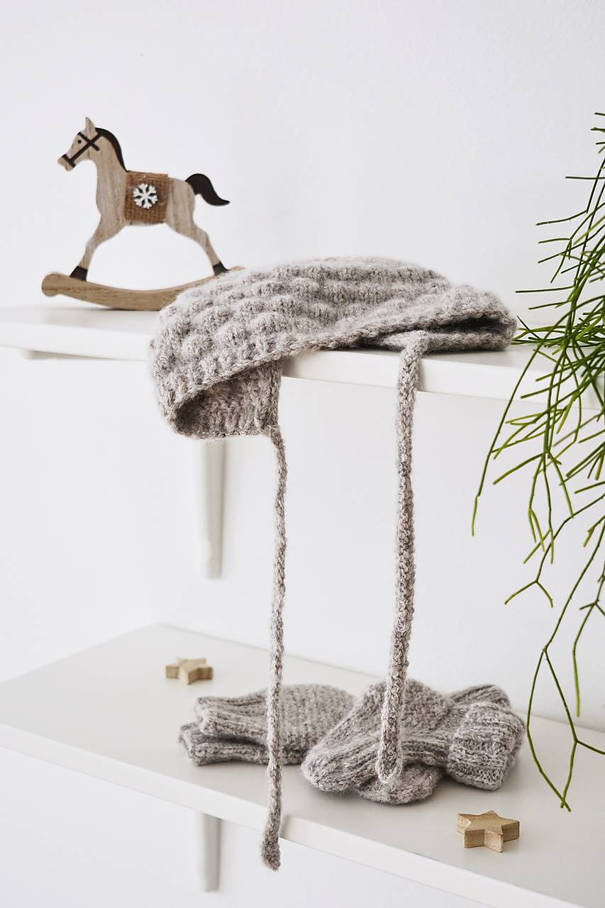 Materiál: Baby alpaka 74 %, polyamid 18 % a merino vlna 8 %. Možno prať len ručne do 30° C, bez použitia aviváže, sušiť voľne rozložené.
