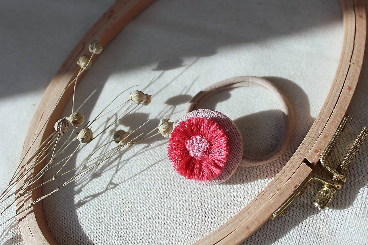 Gumička do vlasov s ručne vyšívanou ľanovou ozdobou dodá šmrnc vlasom stiahnutým do chvosta, drdla alebo vrkoča. Hodí sa akejkoľvek žene alebo dievčatku.