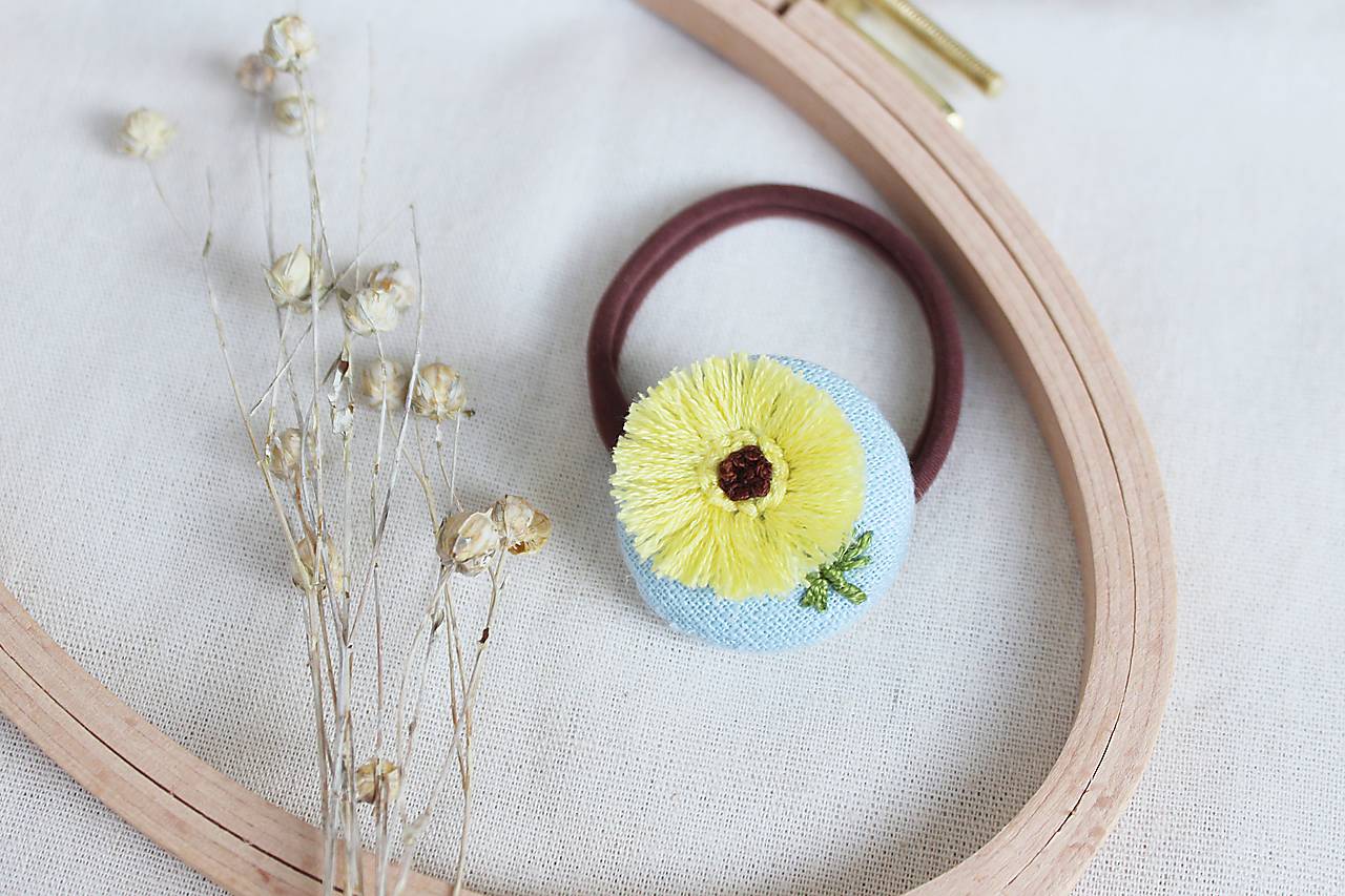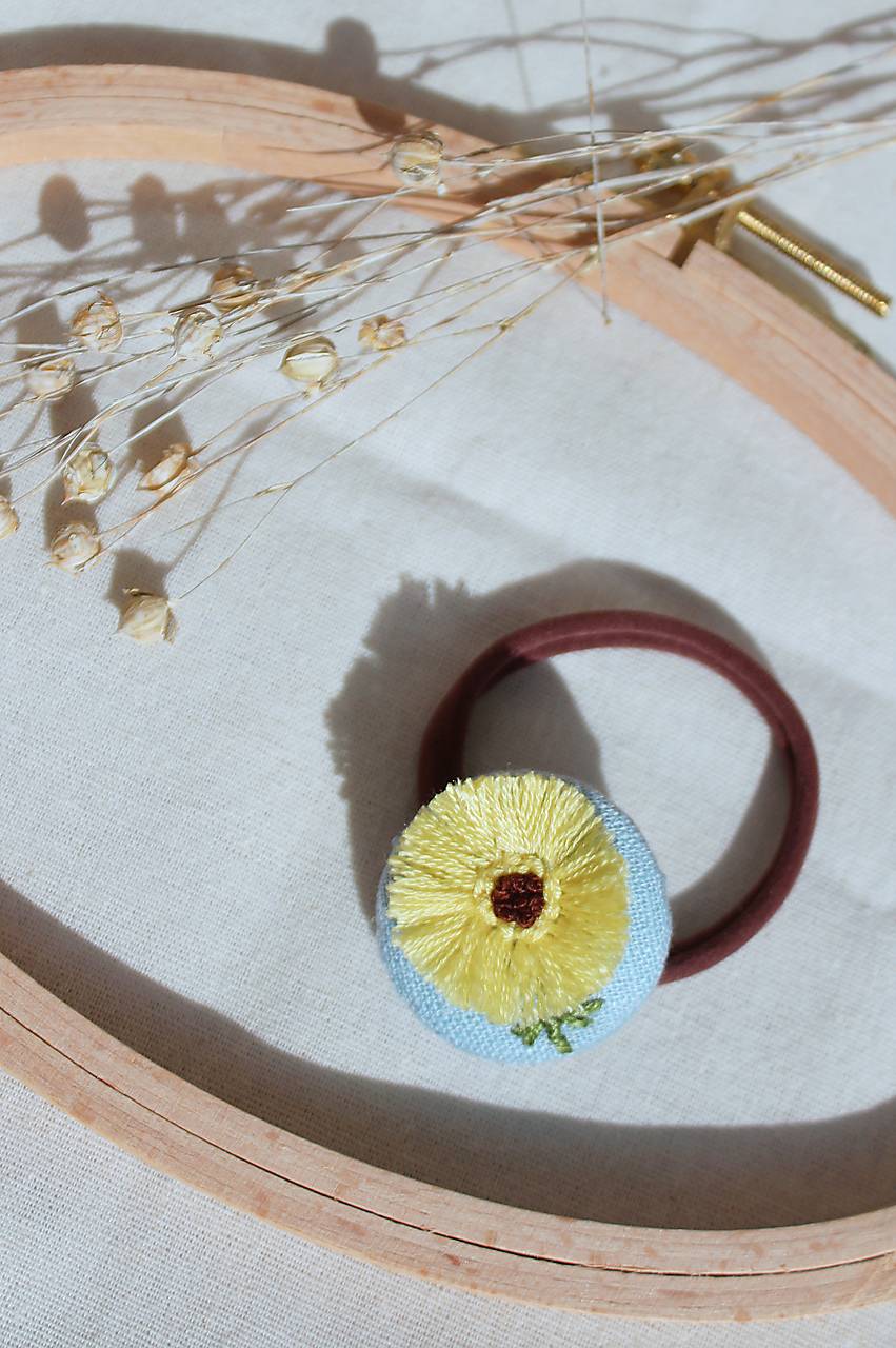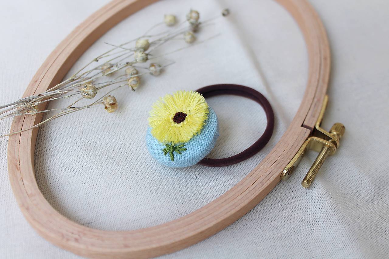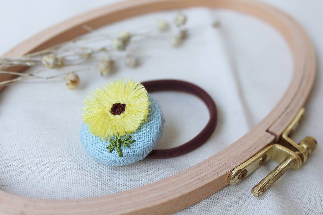 Gumička do vlasov s ručne vyšívanou ľanovou ozdobou dodá šmrnc vlasom stiahnutým do chvosta, drdla alebo vrkoča. Hodí sa akejkoľvek žene alebo dievčatku.