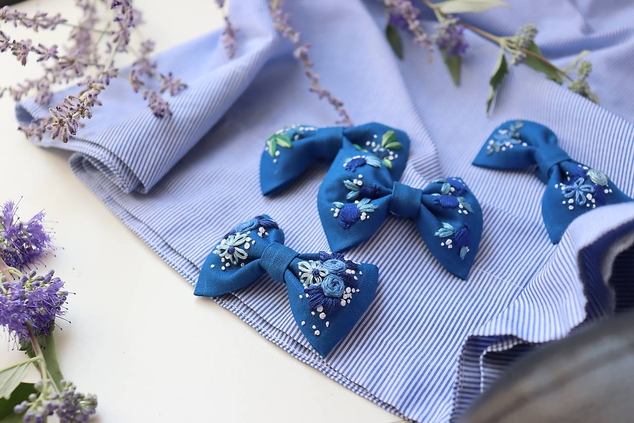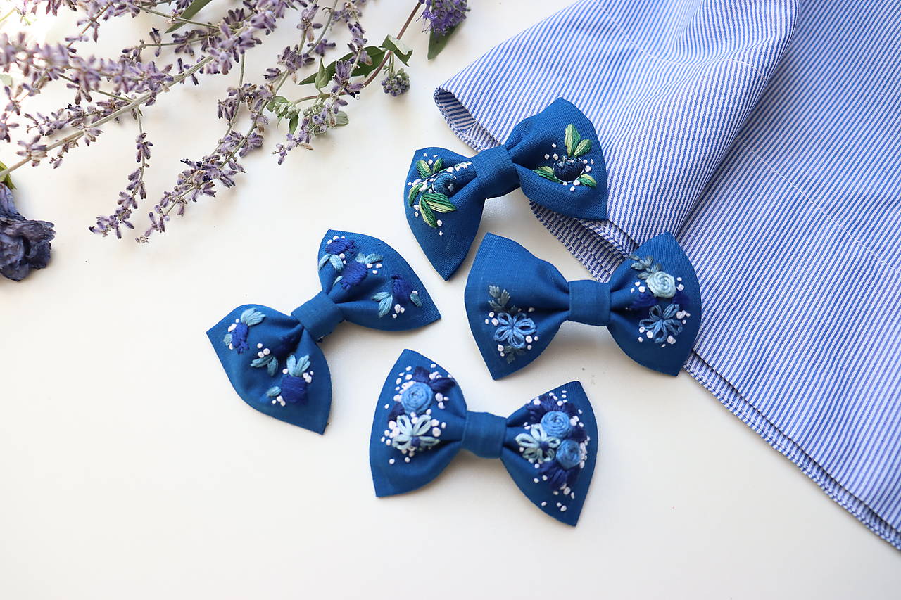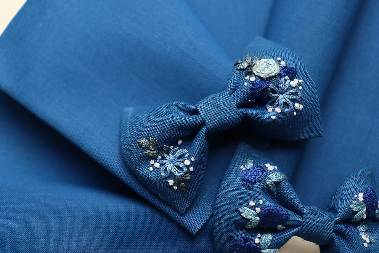 Mašličky sú vyšívané ručne a ušité z kvalitnej bavlnenej látky. Výšivka je pevná a odolná. Vyrobím Vám ich v rôznych farbách s rôznymi vyšívanými motívmi (kvety, lístky, symboly, iniciály...)